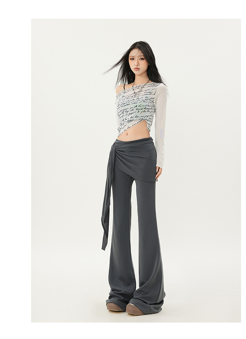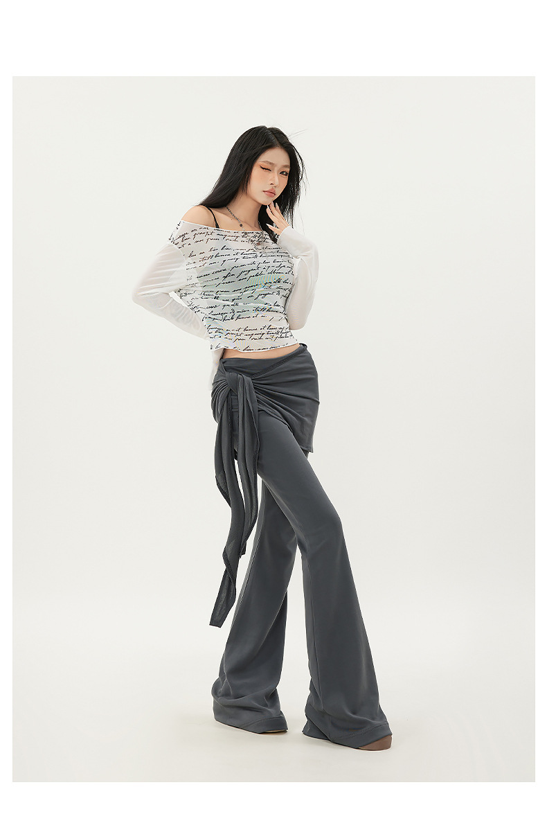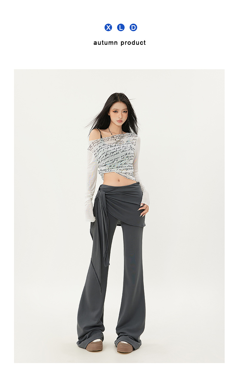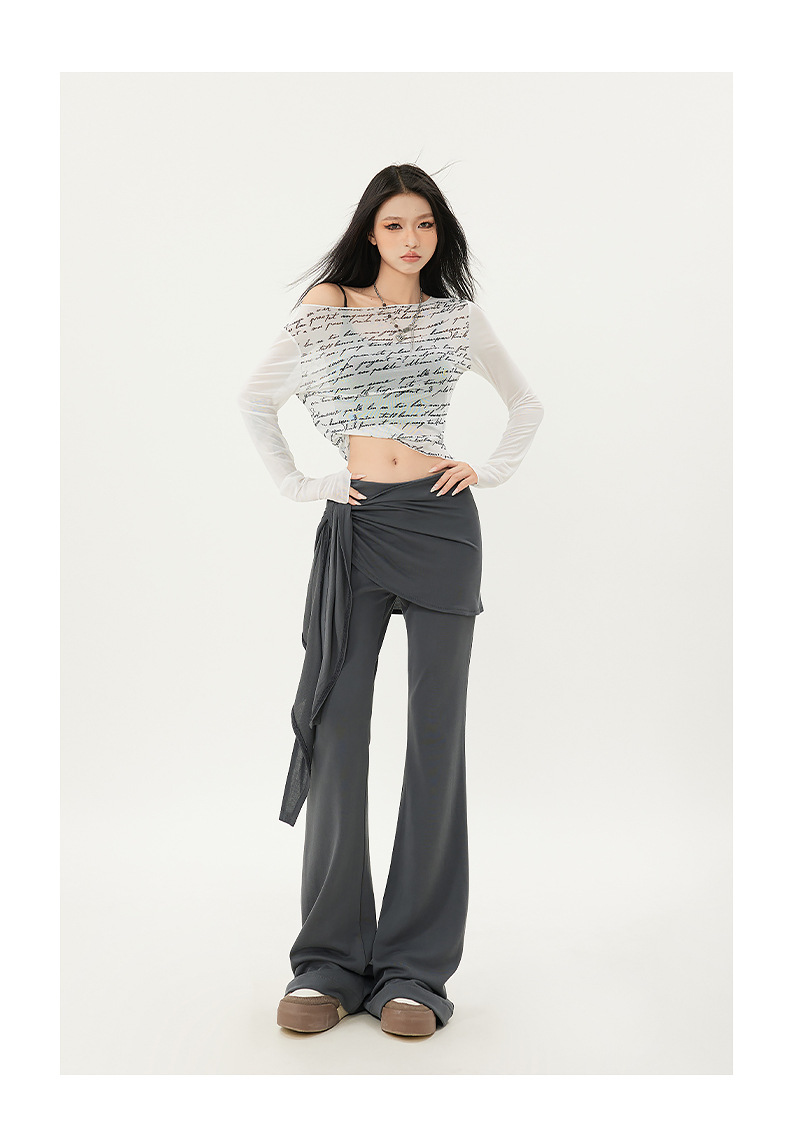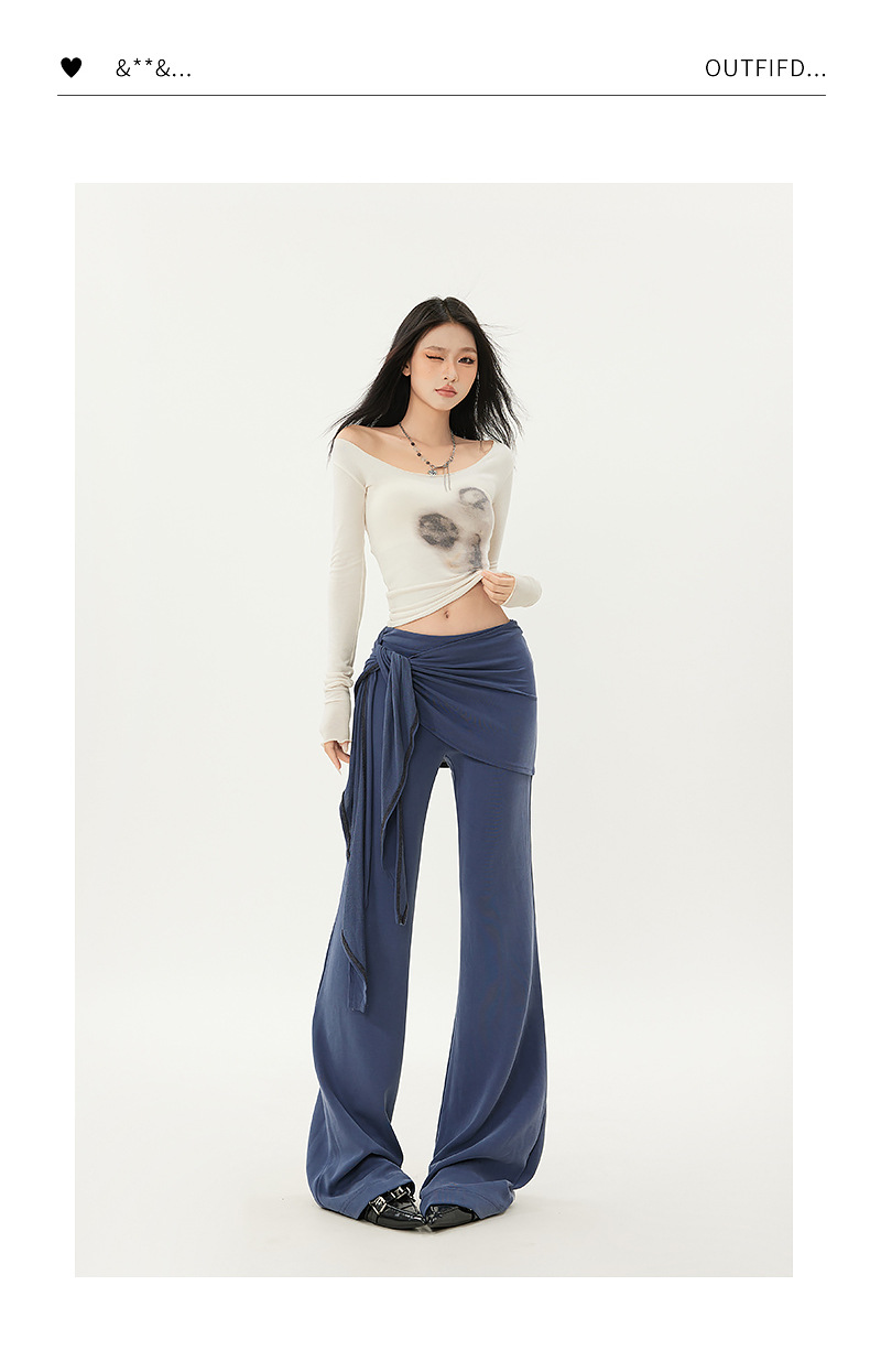 패션 디자인 낮은 허리 캐주얼 마이크로 요가 바지 여성의 2025 봄 새로운 가짜 투피스 슬림 핏 슬리밍 플래 팬츠스토어 가기