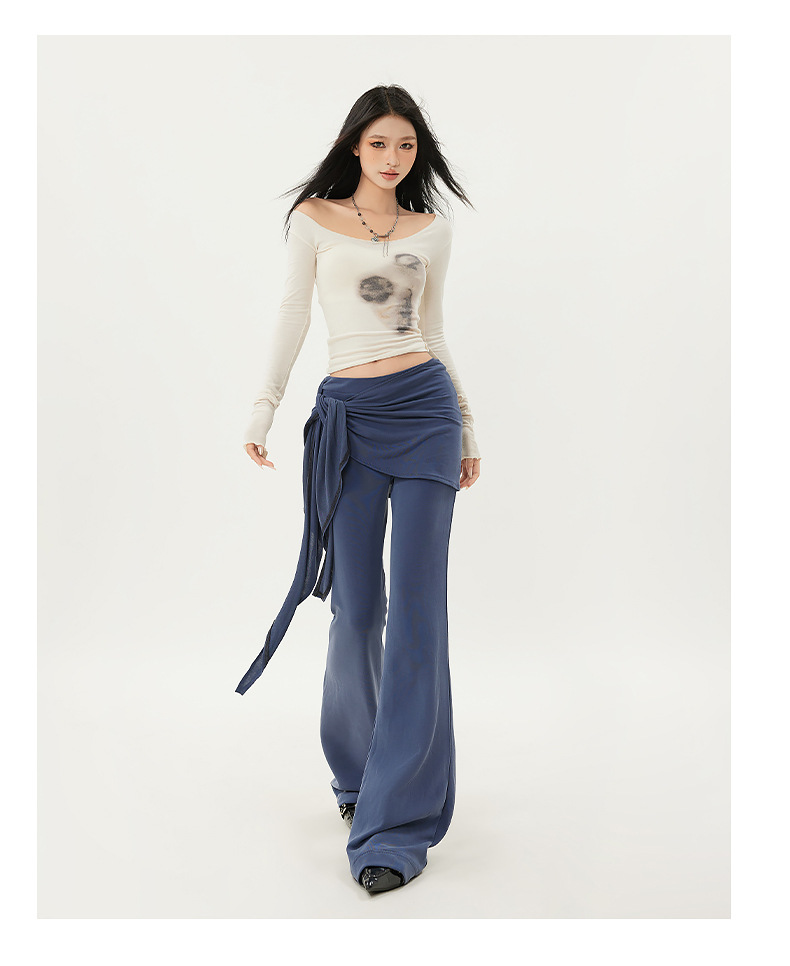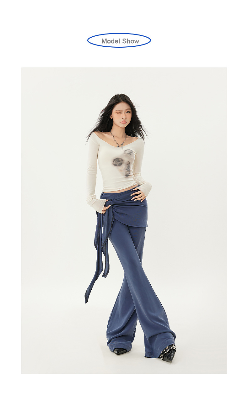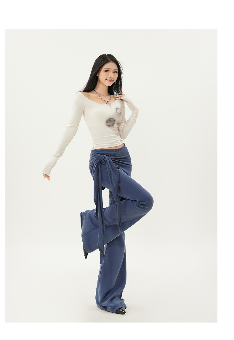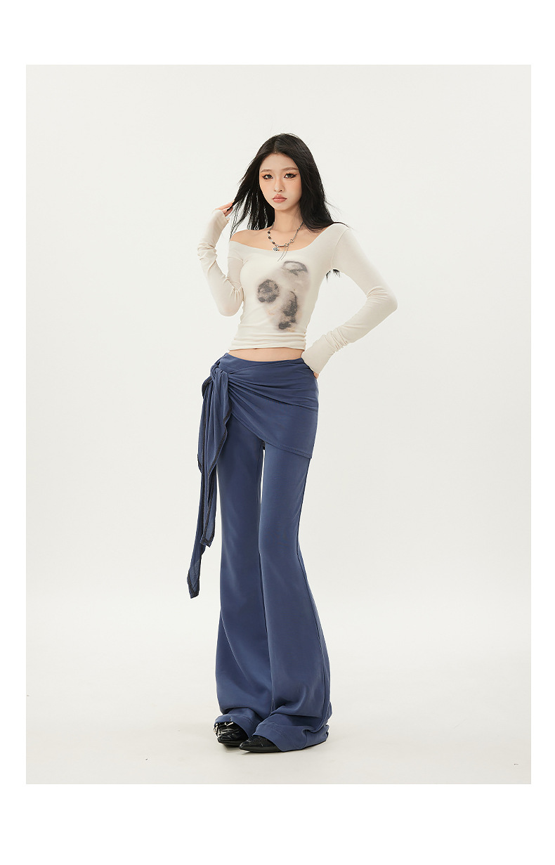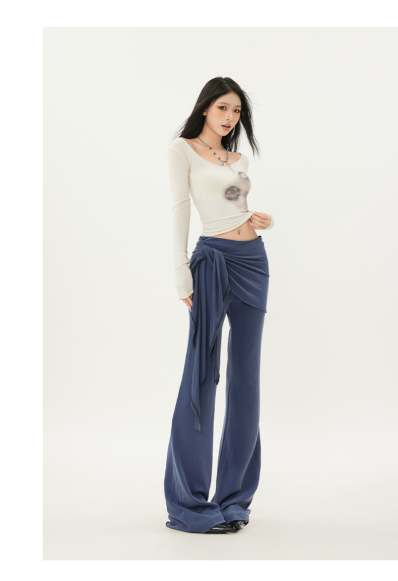 패션 디자인 낮은 허리 캐주얼 마이크로 요가 바지 여성의 2025 봄 새로운 가짜 투피스 슬림 핏 슬리밍 플래 팬츠스토어 가기