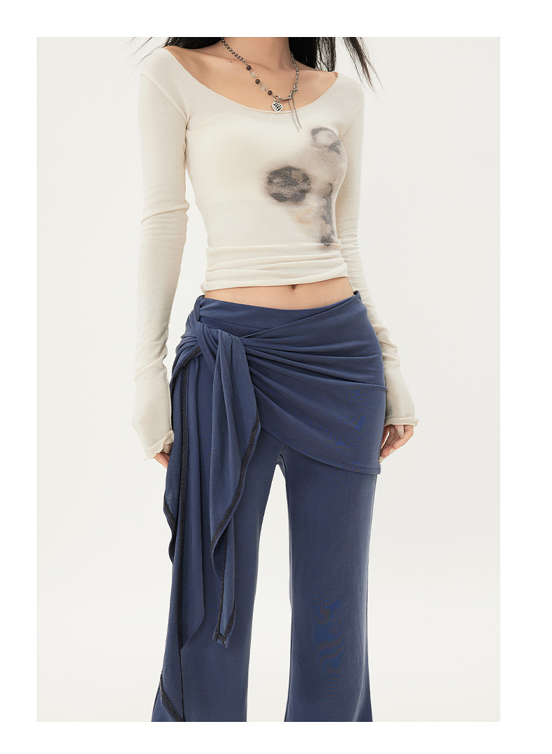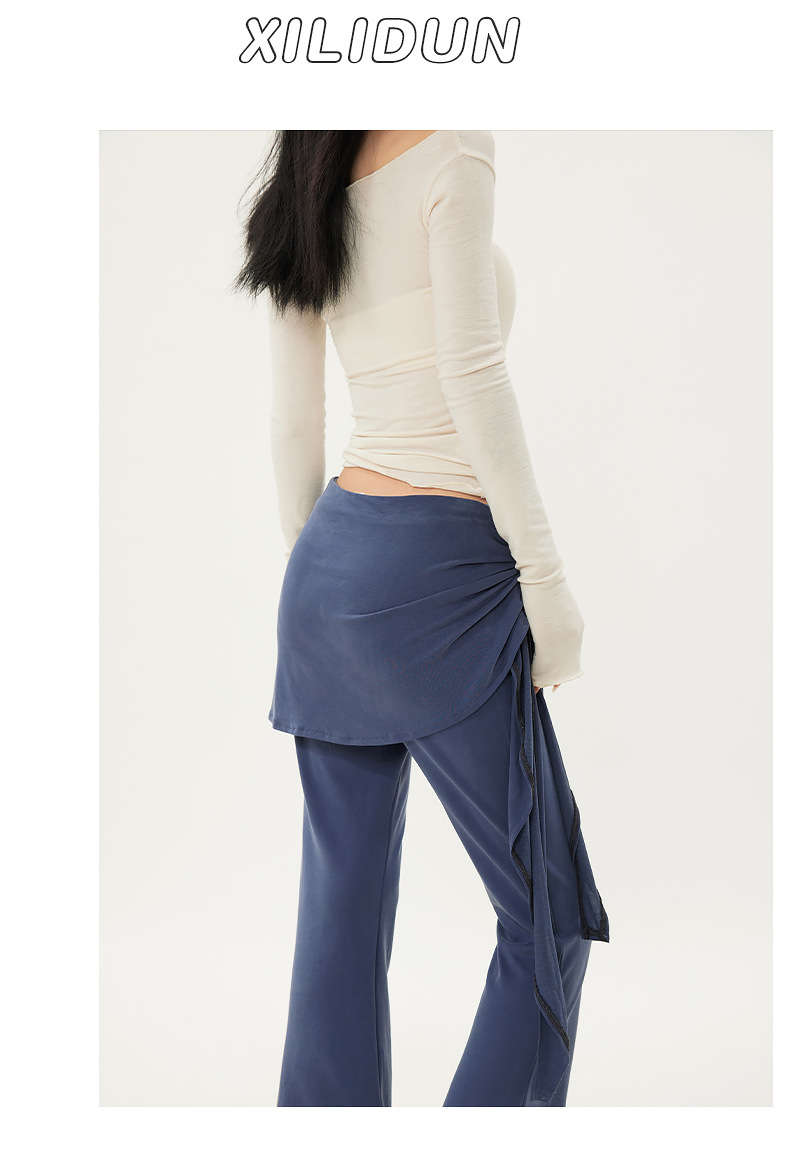 패션 디자인 낮은 허리 캐주얼 마이크로 요가 바지 여성의 2025 봄 새로운 가짜 투피스 슬림 핏 슬리밍 플래 팬츠