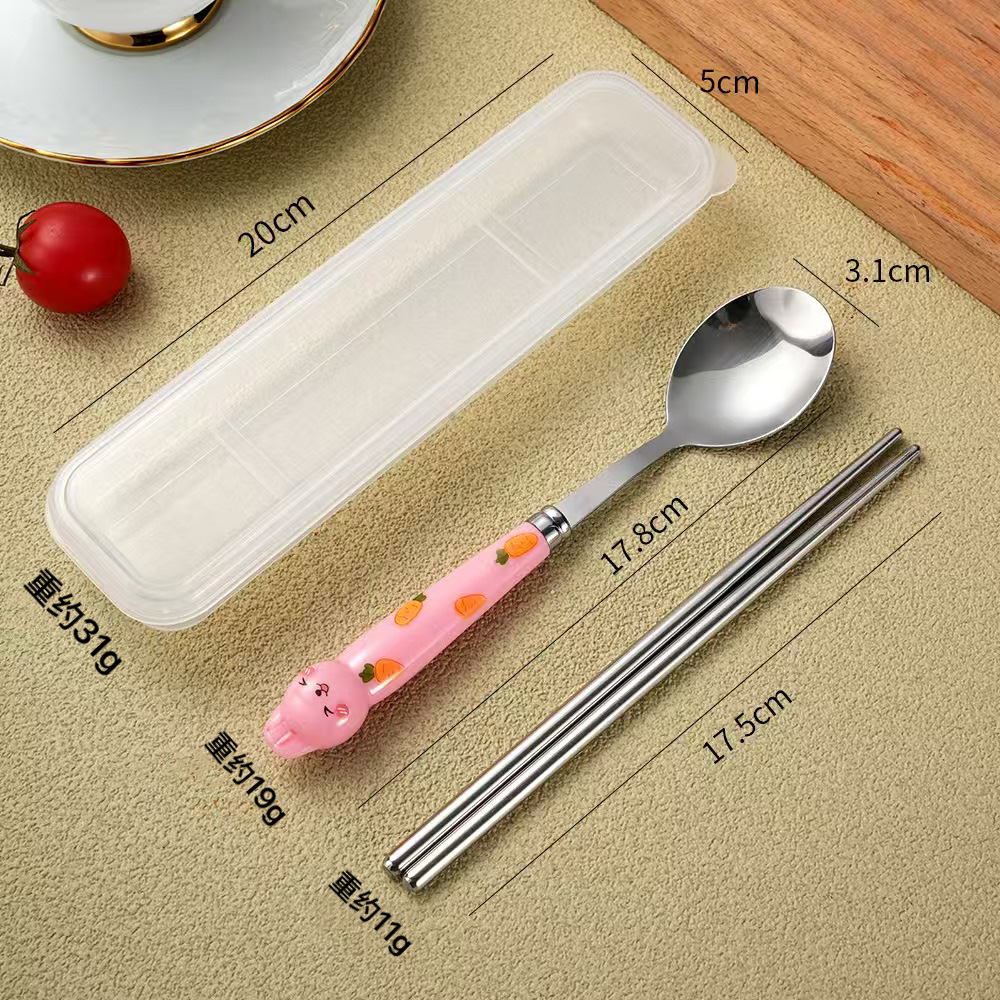 만화 무 토끼 휴대용 식기 스테인레스 스틸 젓가락 숟가락 포크 3 피스 세트 학생 야외 여행 휴대용 식기 세트