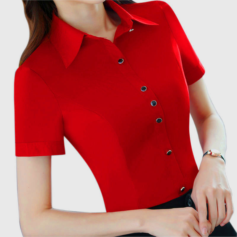 화이트 셔츠 여성 반팔 비즈니스웨어 슬림핏 2025 여름 원피스 한국식 원피스 슬리밍 올매치 레드 셔츠 작업복