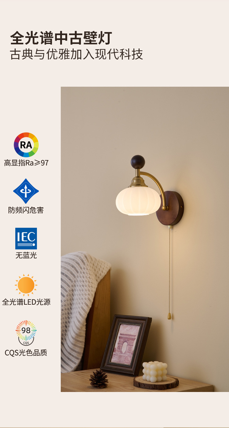 침실 벽 램프 침대 옆 램프 중간 미국 복고 스타일 2025 새로운 거실 배경 벽 통로 복도 램프스토어 가기