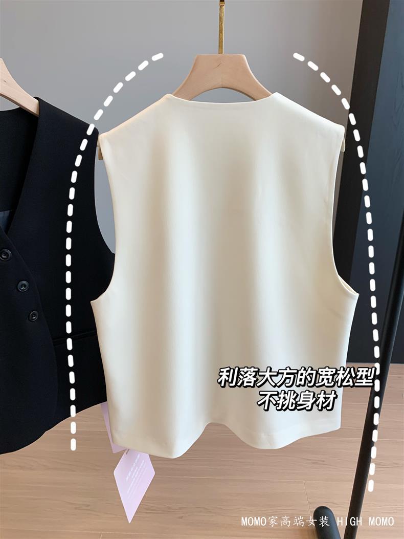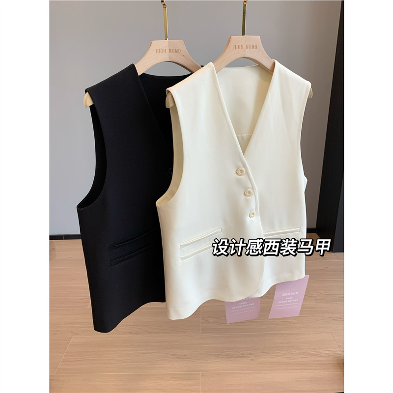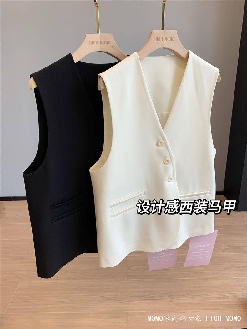 봄이 너무 늦지 않았습니다 ~ 비대칭 디자인 기질과 미니멀리스트 디자인 V-목 세트 조끼 여성 2025 새로운스토어 가기