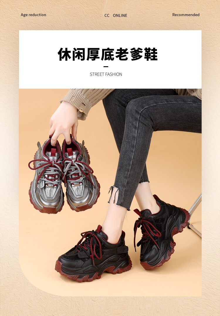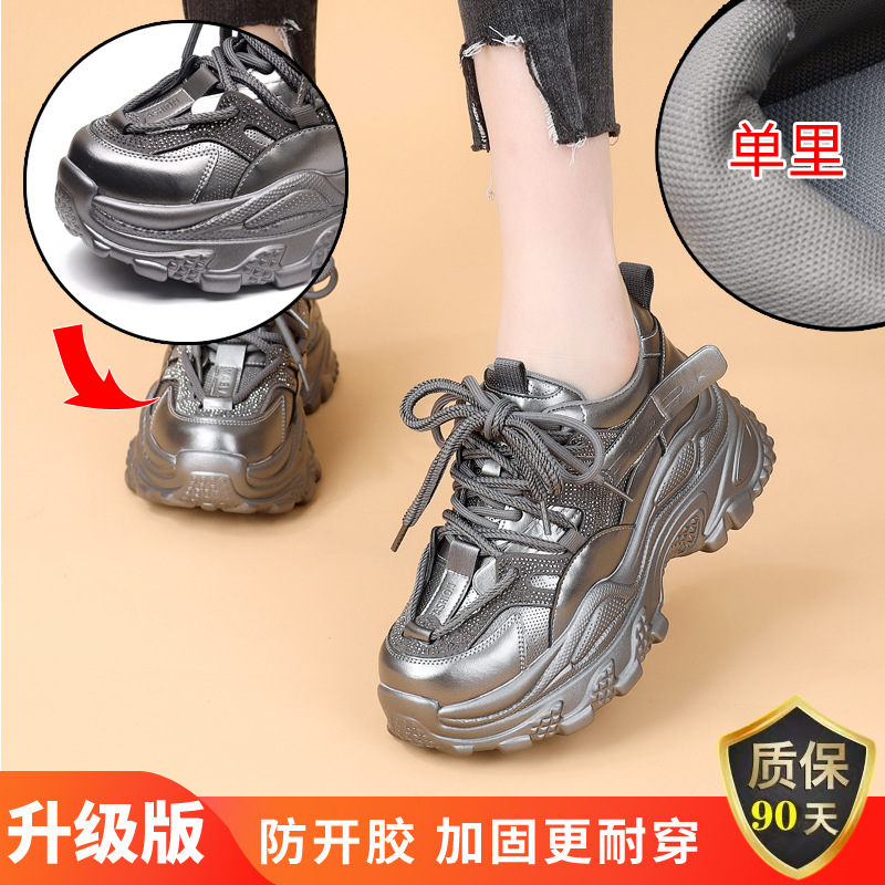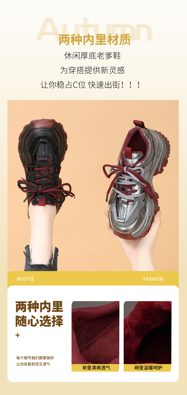 가죽 모조 다이아몬드 두꺼운 밑창 아빠 신발 여성 2024 새로운 가을과 겨울 기모 작은 두꺼운 밑창 캐주얼 운동화스토어 가기