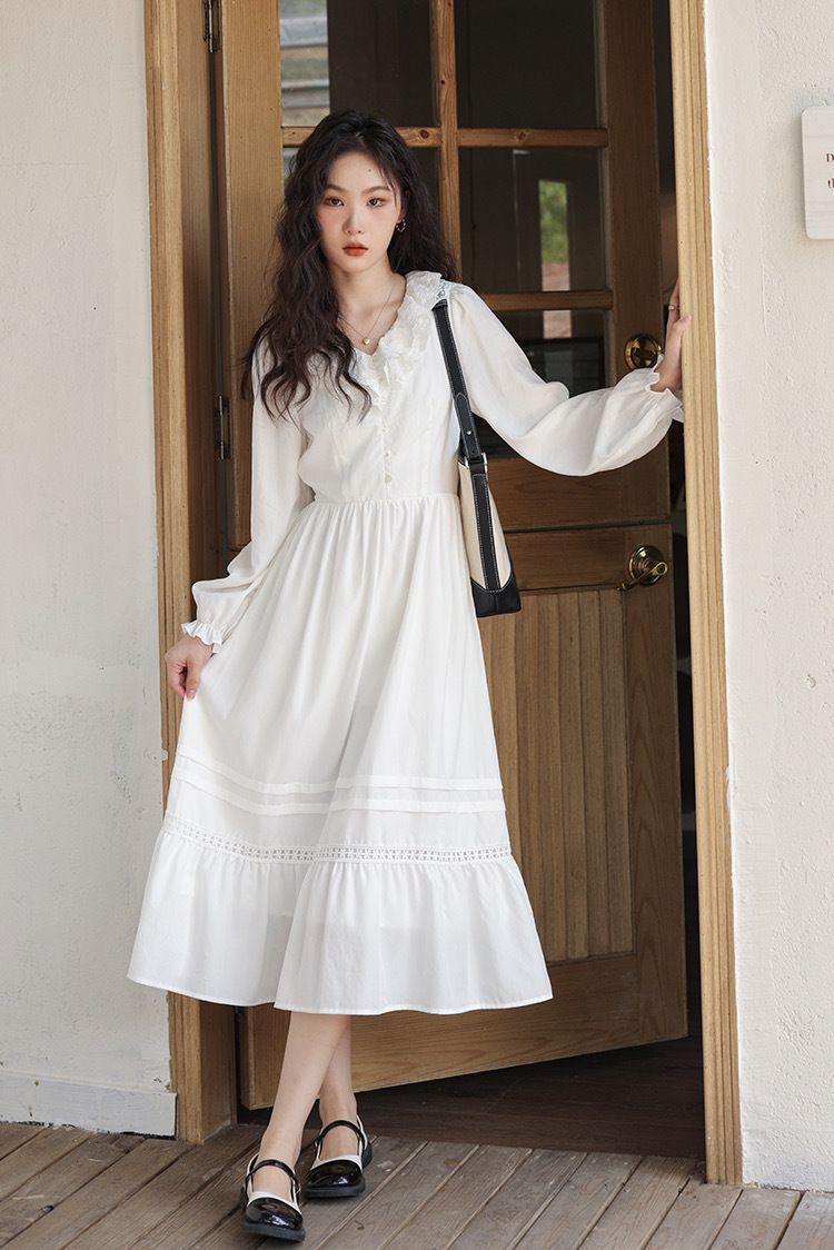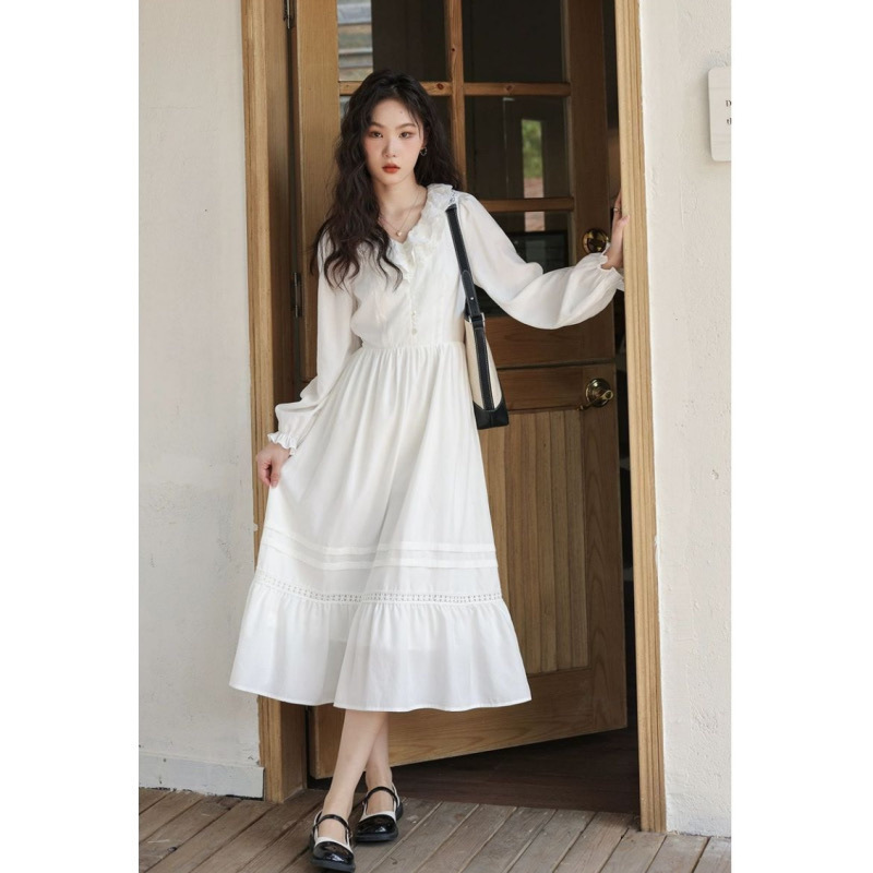 긴팔 원피스 프렌치 스위트 A 라인 원피스