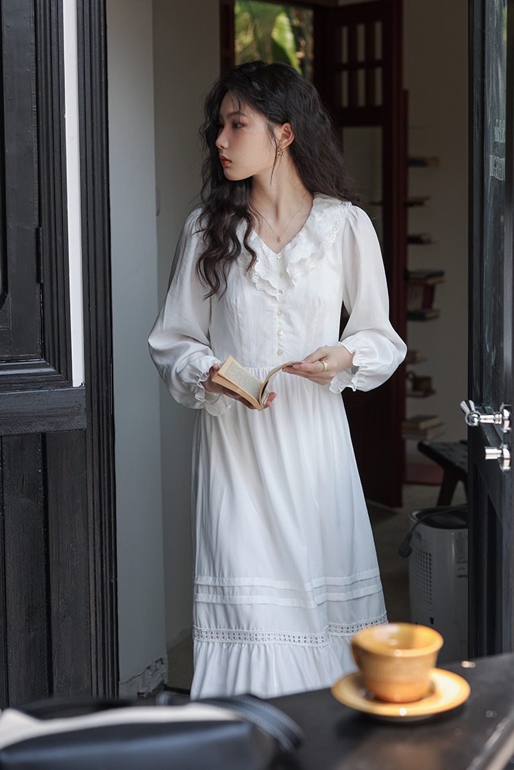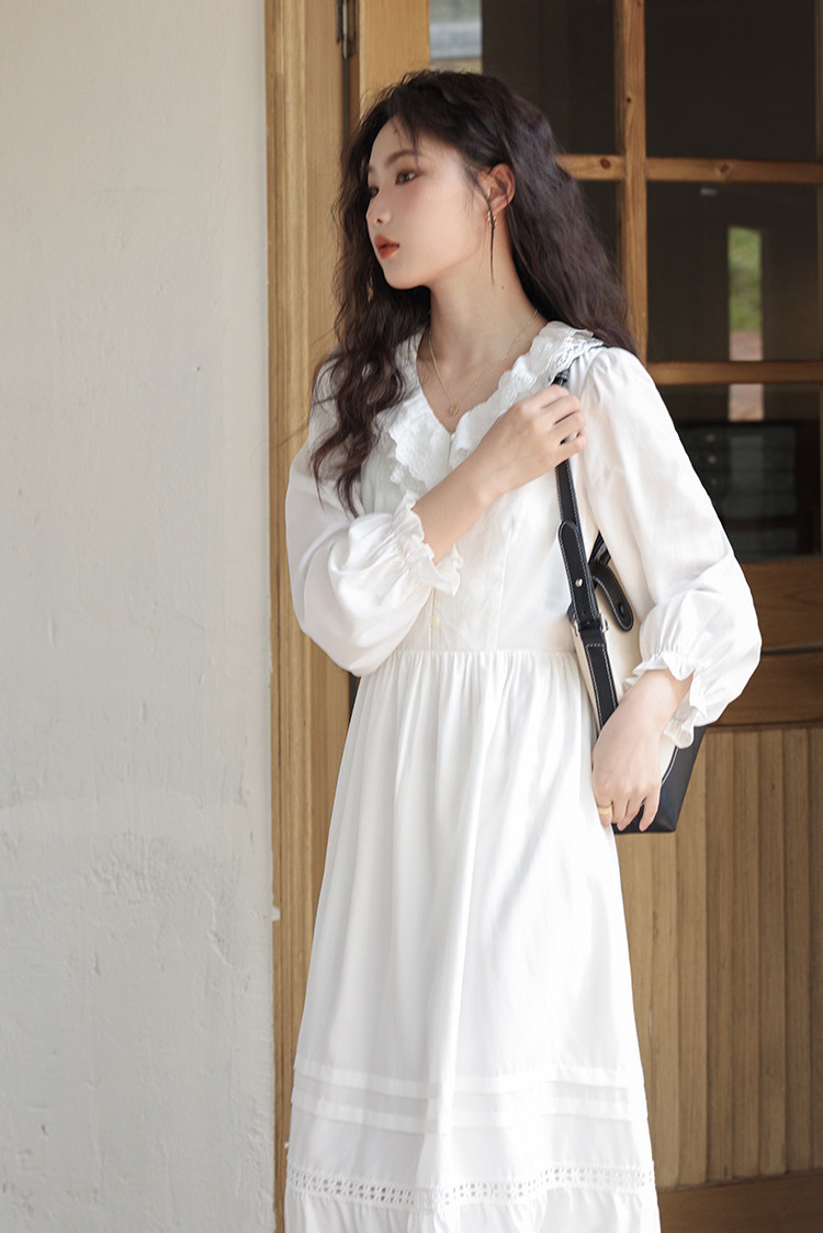 긴팔 원피스 프렌치 스위트 A 라인 원피스스토어 가기