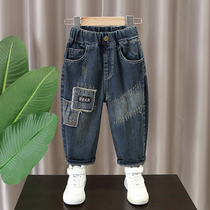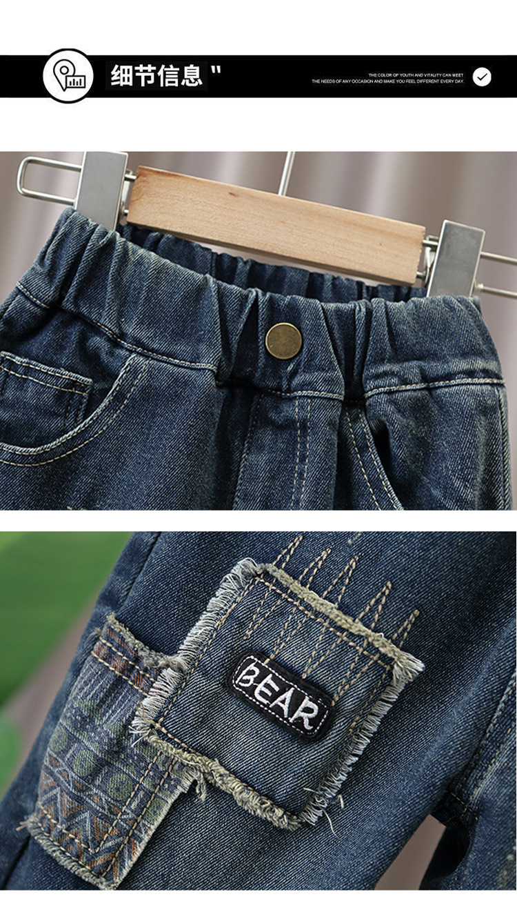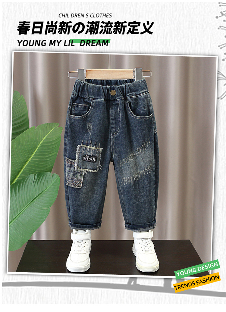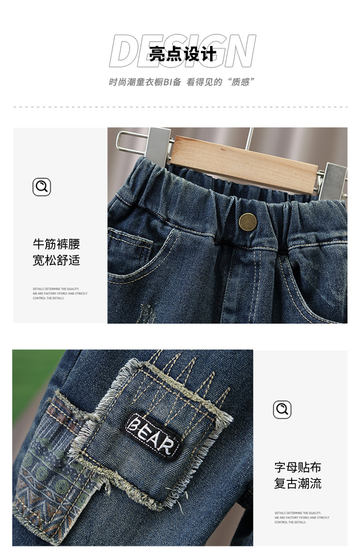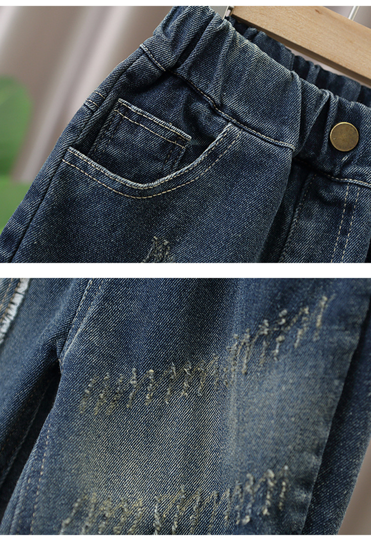 소년 청바지 2025 년 봄과 가을 새로운 패션 쿨 핸섬 찢어진 바지 어린이 가을 스트레이트 느슨한 바지스토어 가기
