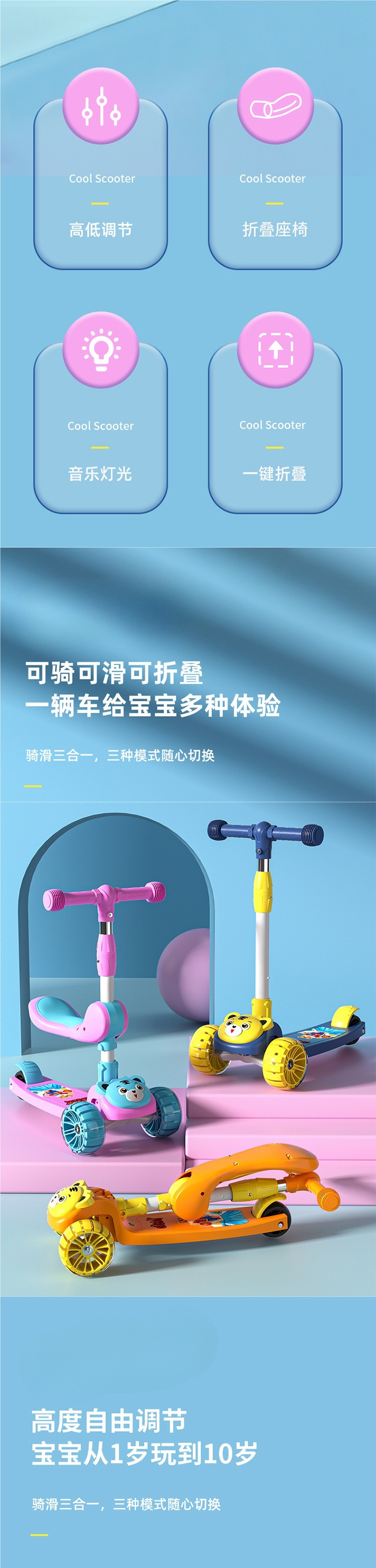 Yuanyi 스쿠터 1-12 세 어린이는 3 대 1 스쿠터 소녀 소년 아기 스쿠터 스쿠터를 탈 수 있습니다.