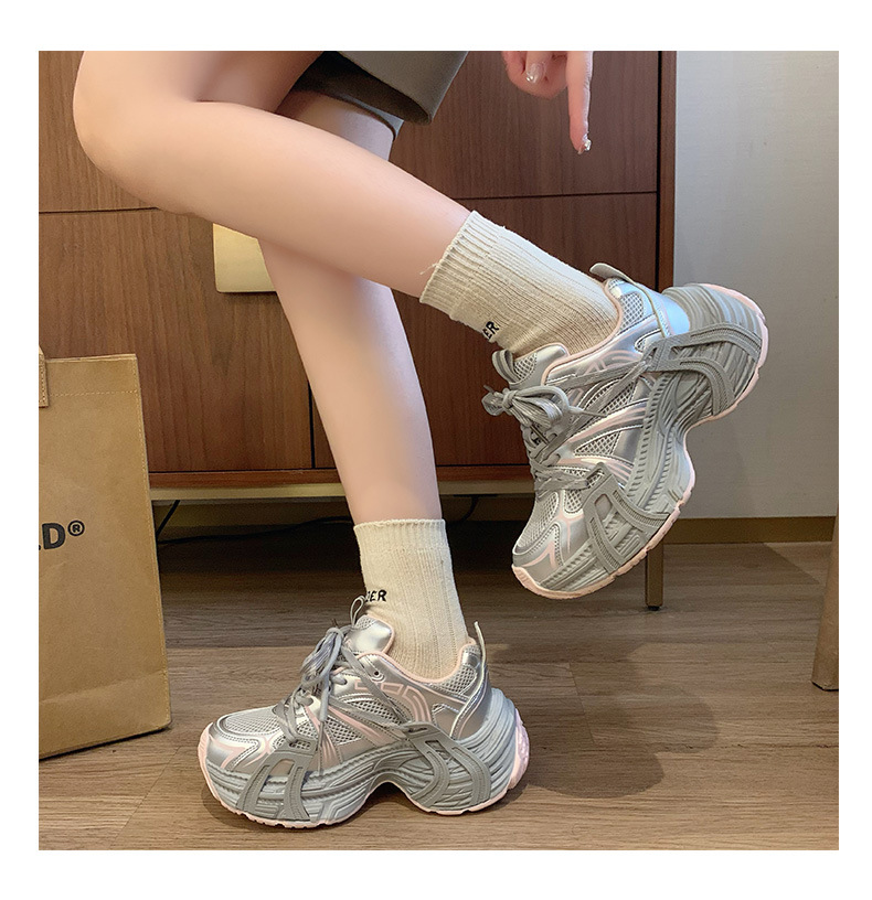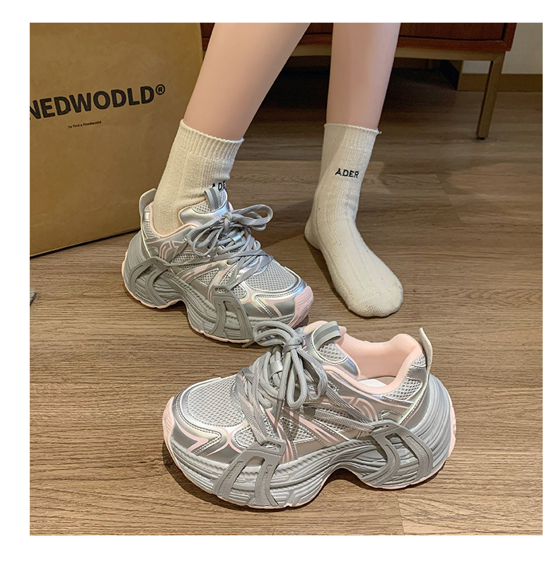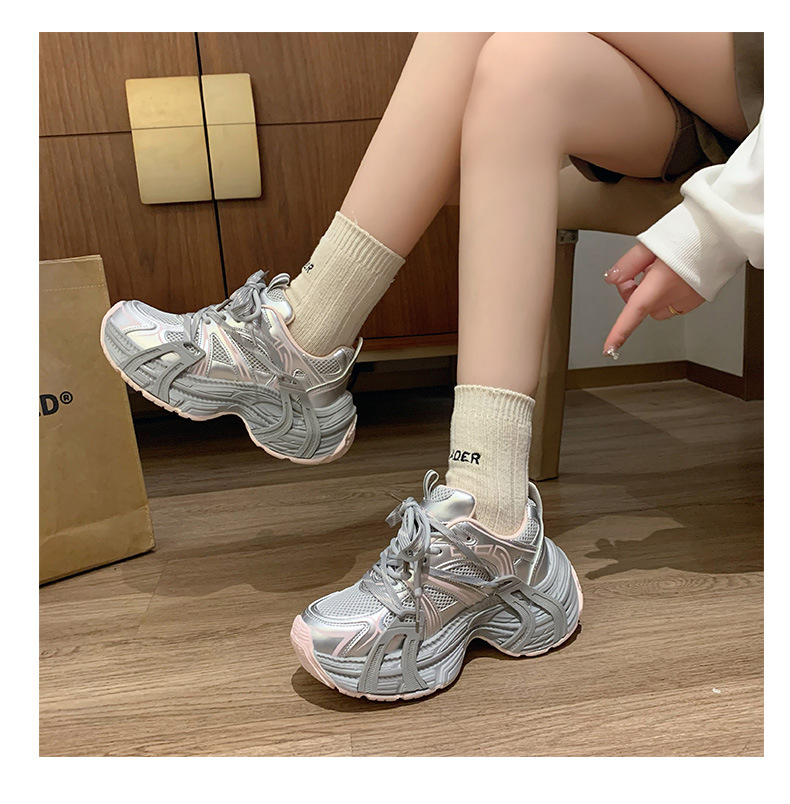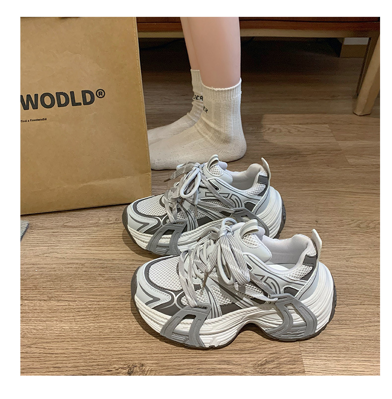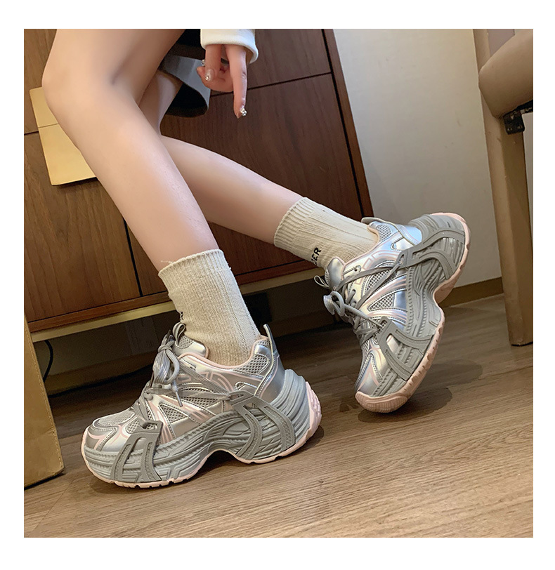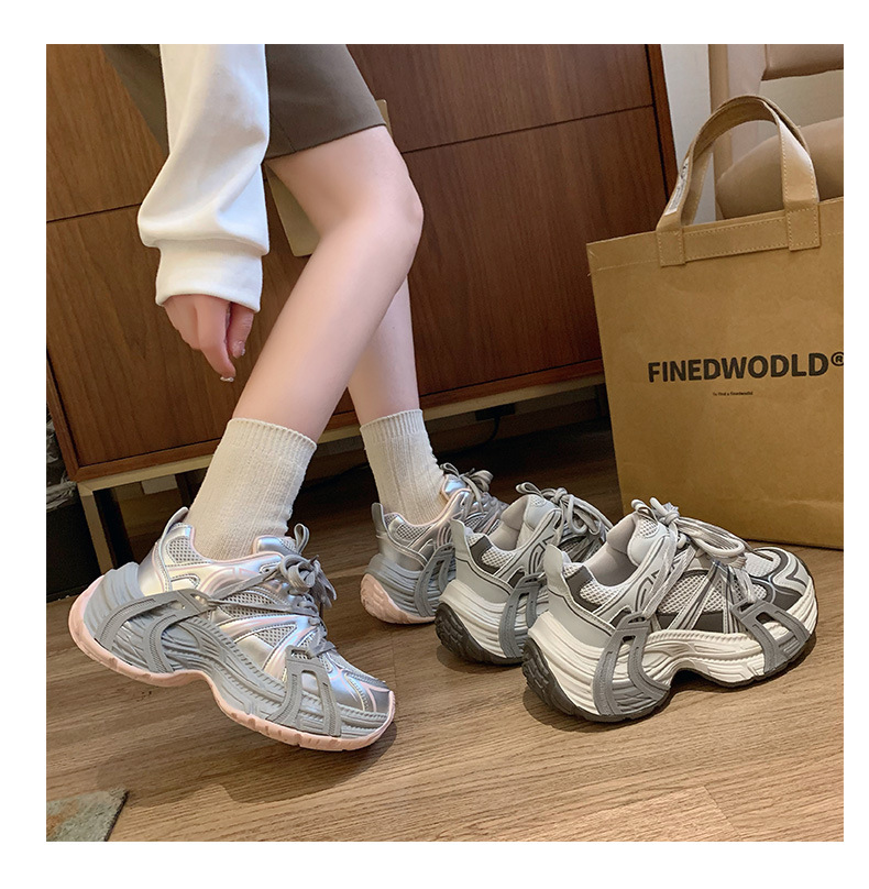 2025 년 초 봄 새로운 캐주얼 두꺼운 여성 신발 정품 가죽 라운드 토 레이스 업 아빠 신발 여성의 높이 증가 올 매치 여성 싱글 레이어 신발스토어 가기