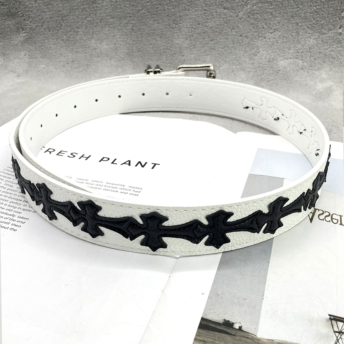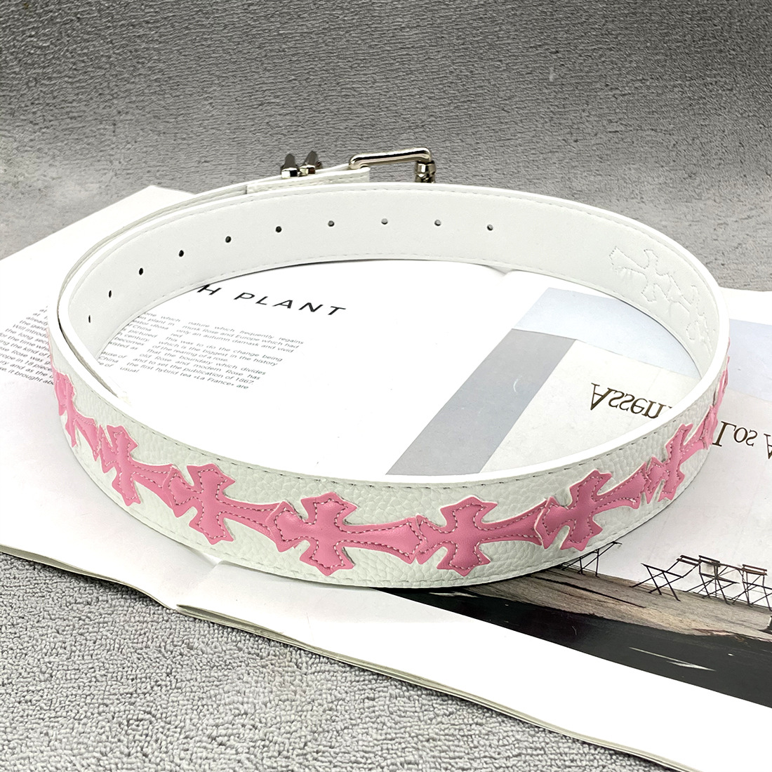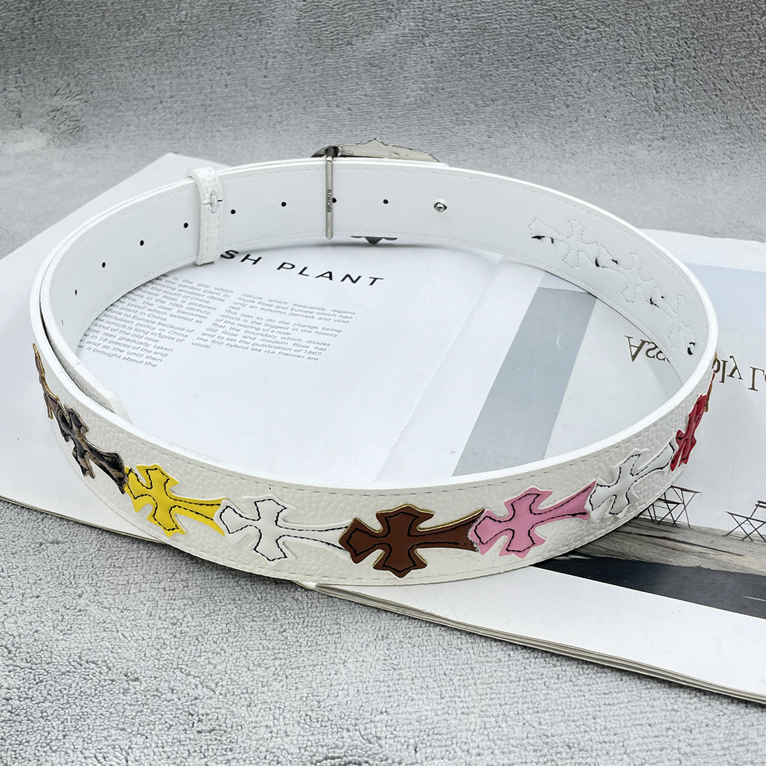 다채로운 크로스 가죽 꽃 CH 바늘 버클 가죽 자수 벨트 남성 롤러 중공 덩굴 벨트 여성 스타 화이트