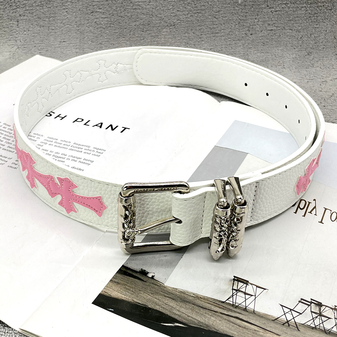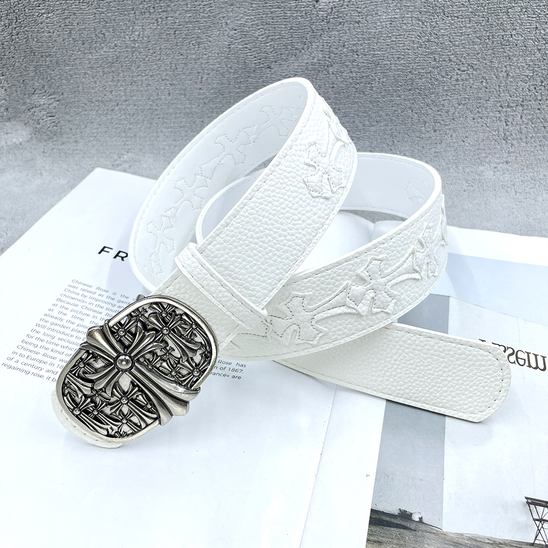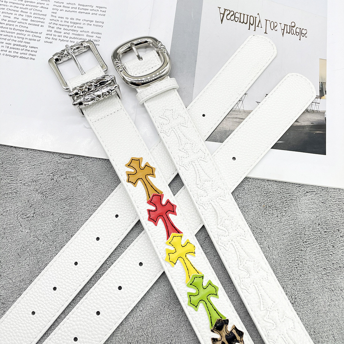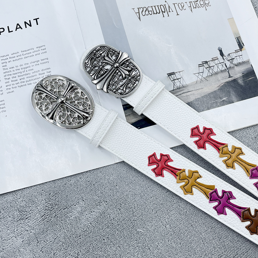 다채로운 크로스 가죽 꽃 CH 바늘 버클 가죽 자수 벨트 남성 롤러 중공 덩굴 벨트 여성 스타 화이트