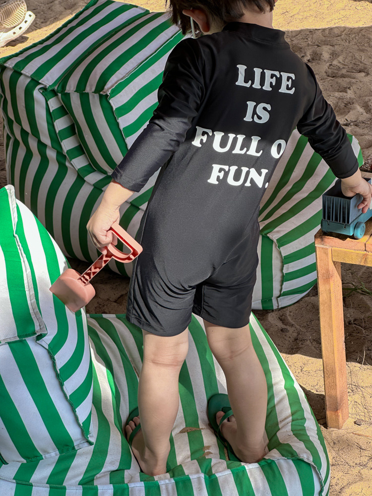 소년 소녀를위한 어린이 알파벳 수영복 여름 긴 소매 퀵 드라이 비치 홀리데이 수영복 캐주얼스토어 가기