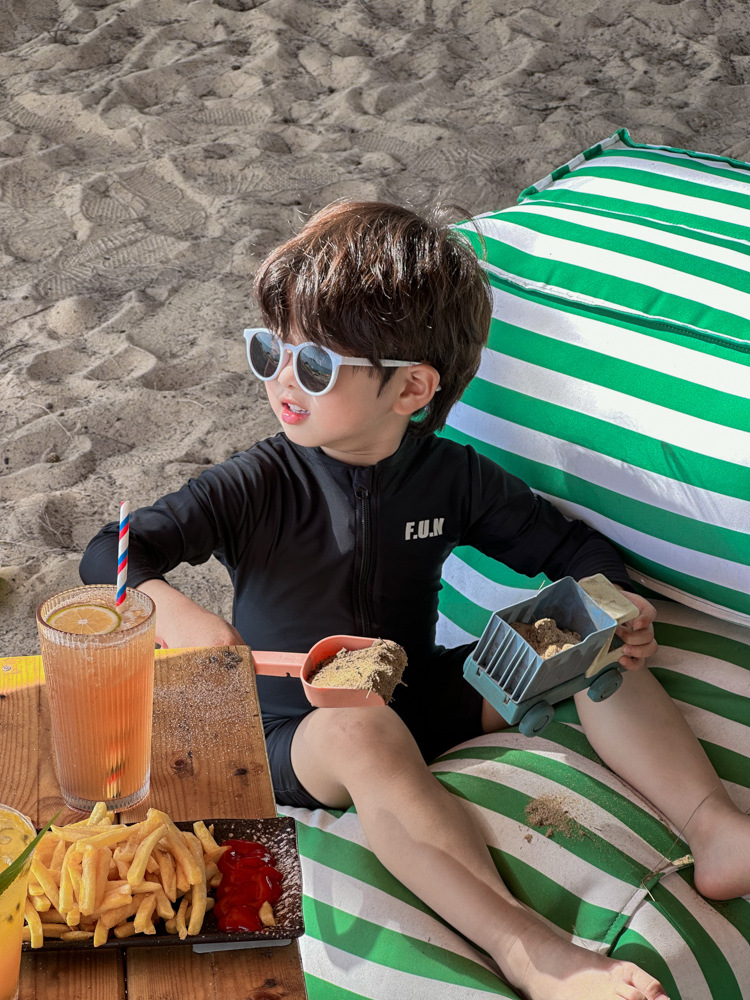 소년 소녀를위한 어린이 알파벳 수영복 여름 긴 소매 퀵 드라이 비치 홀리데이 수영복 캐주얼