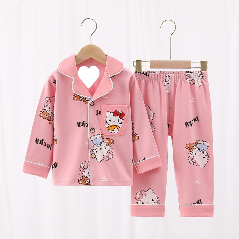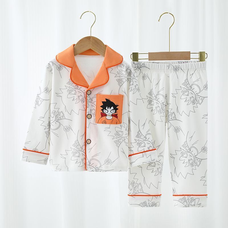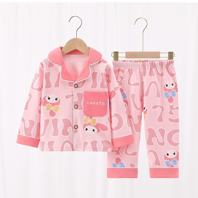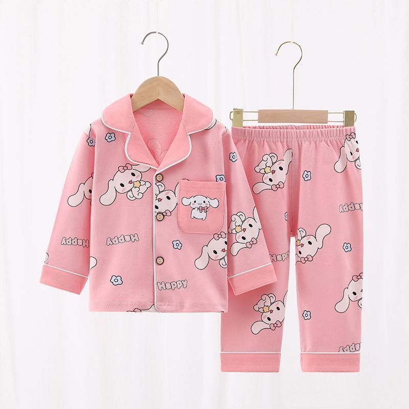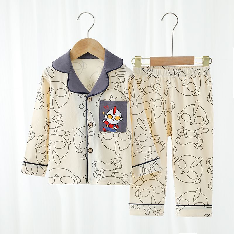 어린이 잠옷 세트 봄과 가을 긴 소매 코튼 파자마 소년 소녀를위한 코튼 카툰 카디건 새 옷 집