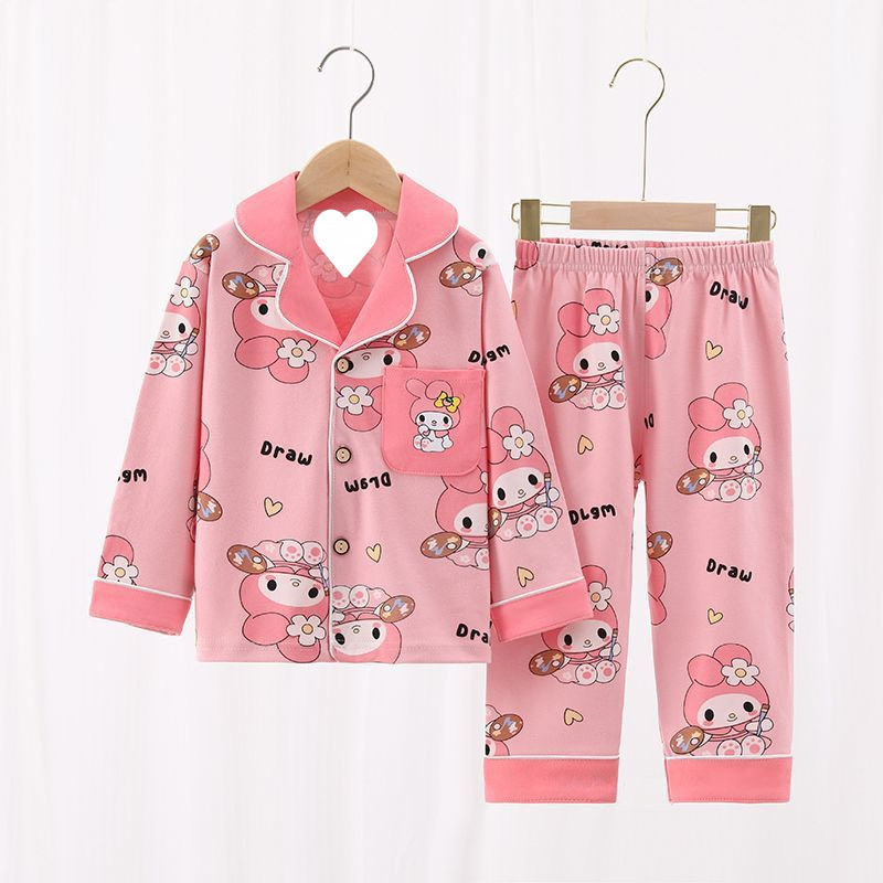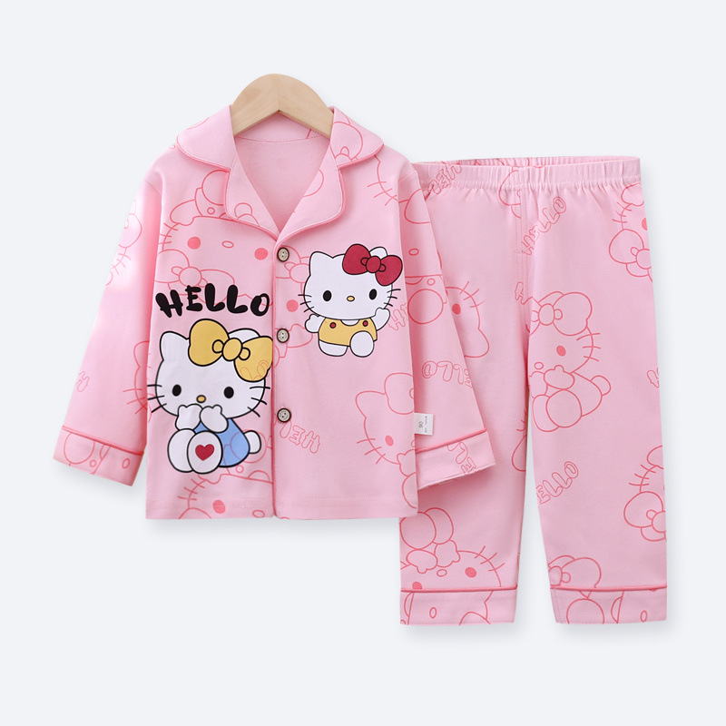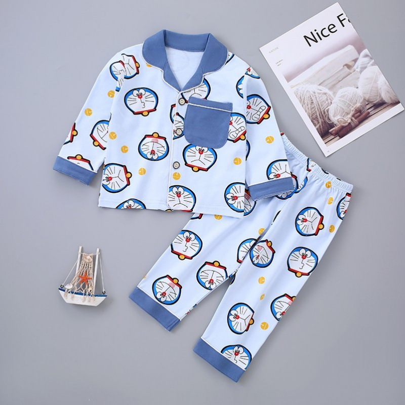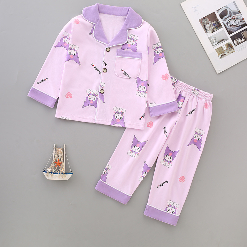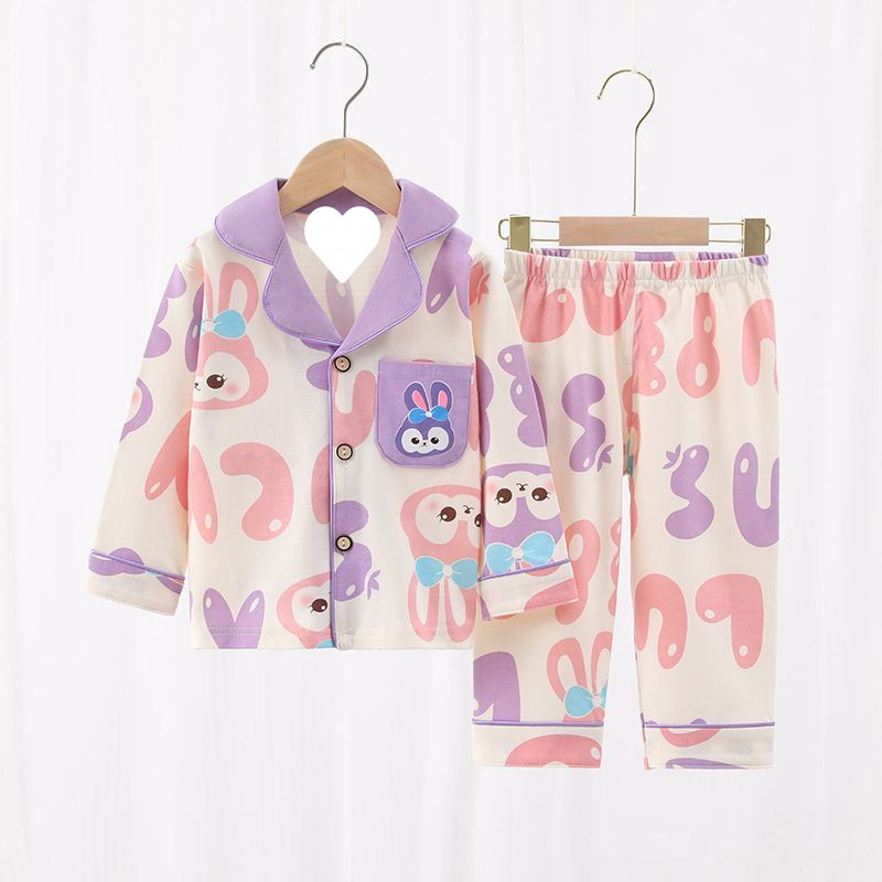 어린이 잠옷 세트 봄과 가을 긴 소매 코튼 파자마 소년 소녀를위한 코튼 카툰 카디건 새 옷 집