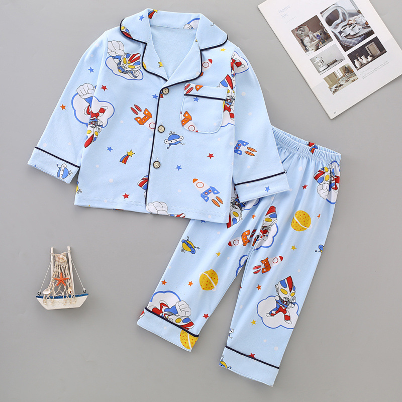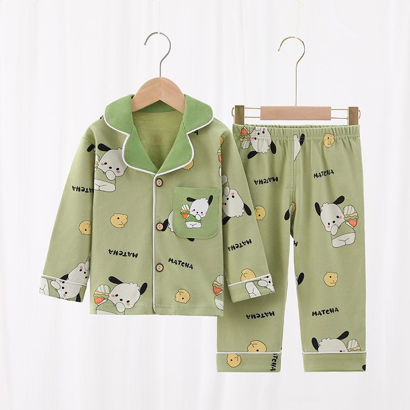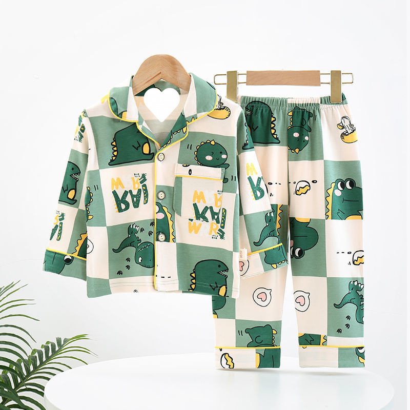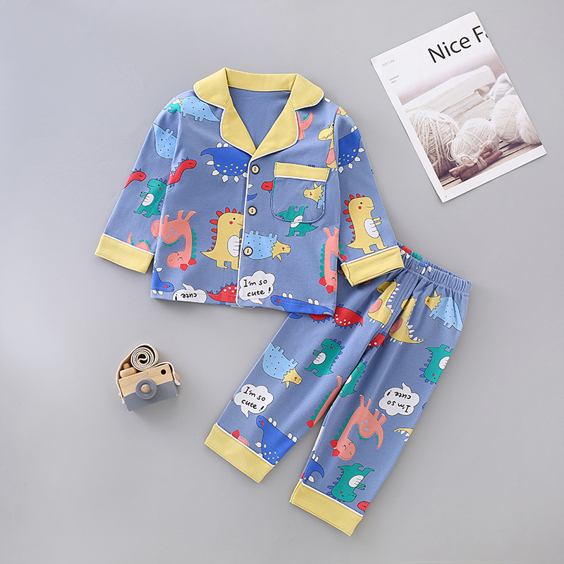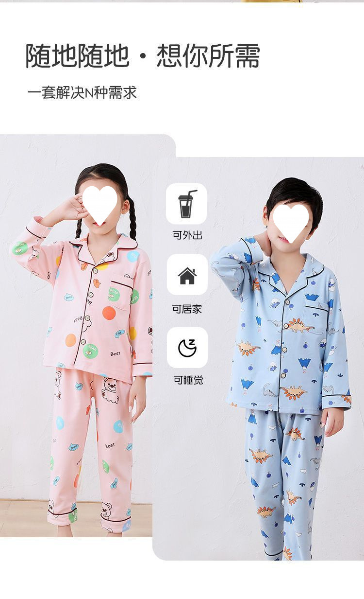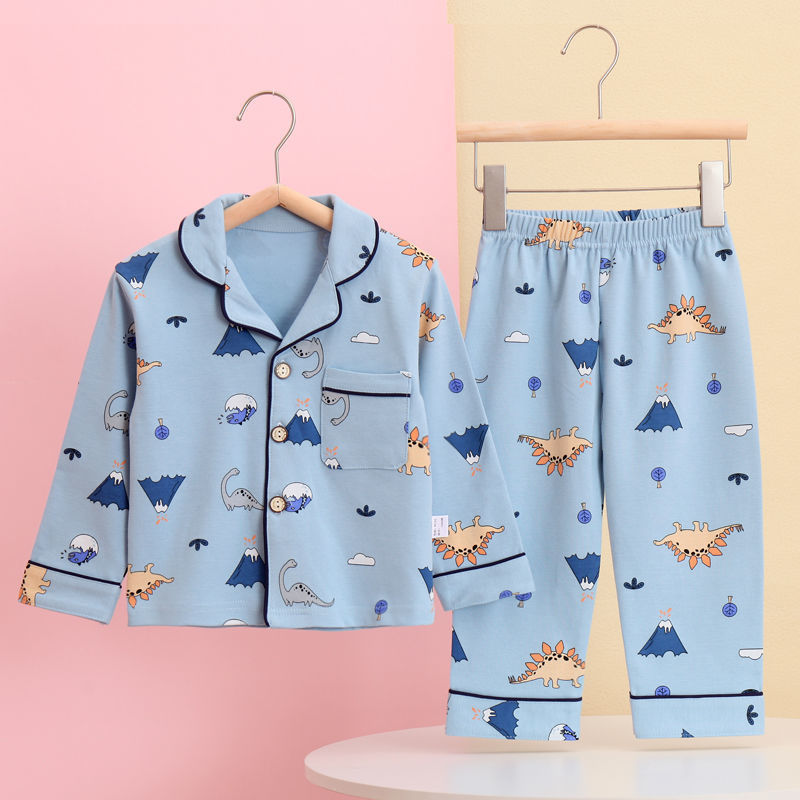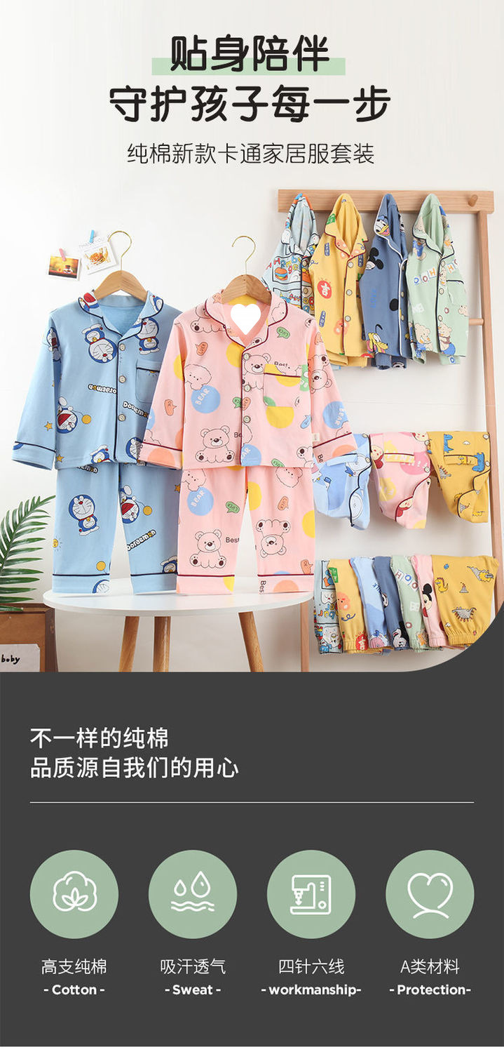 어린이 잠옷 세트 봄과 가을 긴 소매 코튼 파자마 소년 소녀를위한 코튼 카툰 카디건 새 옷 집스토어 가기