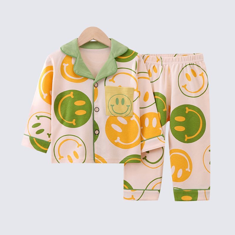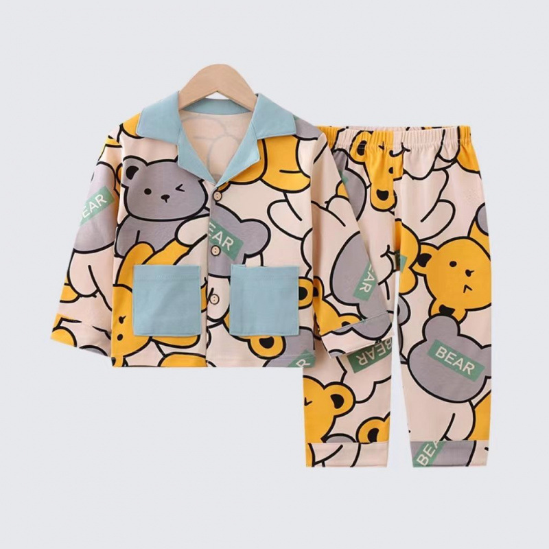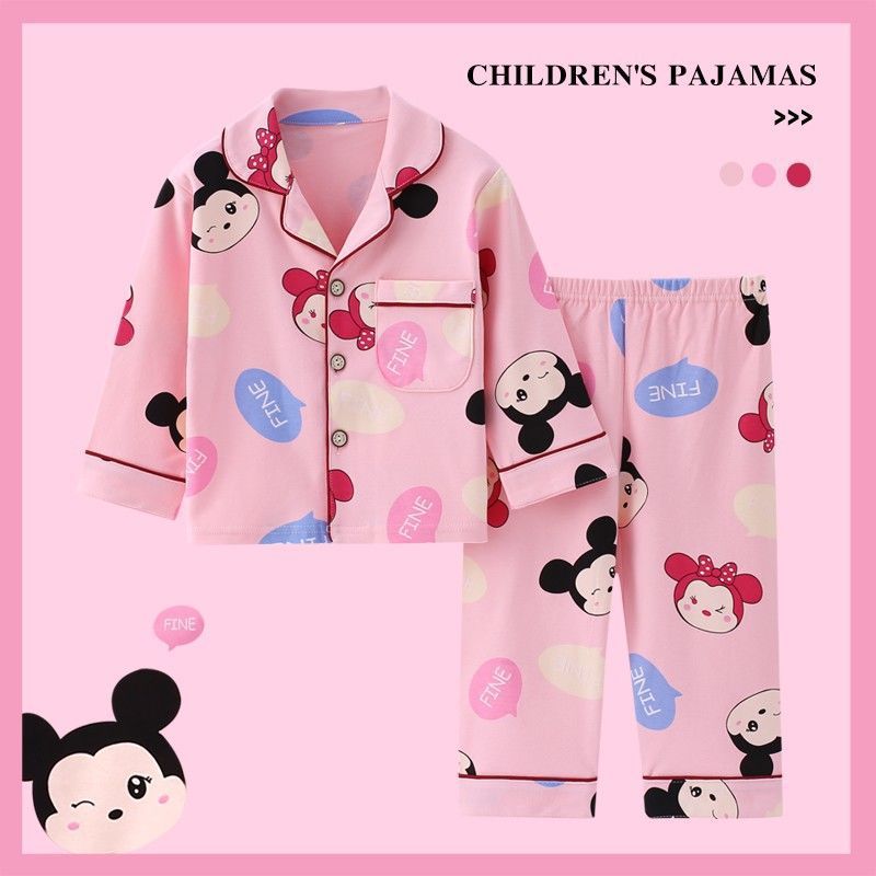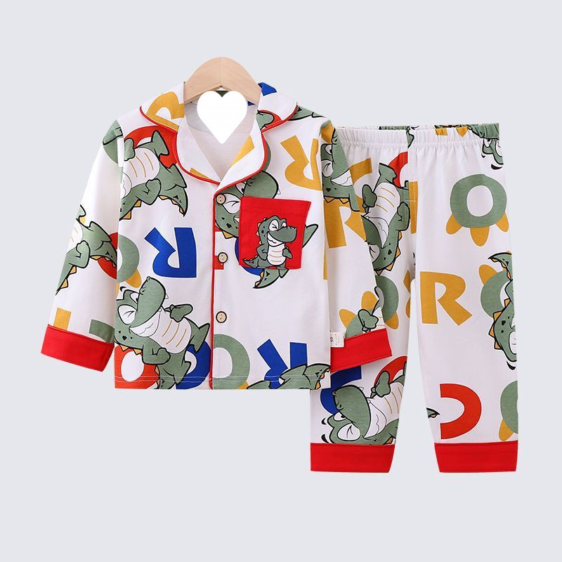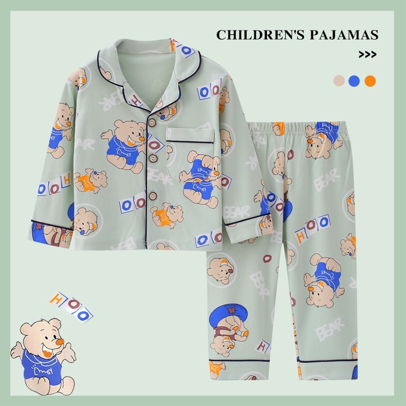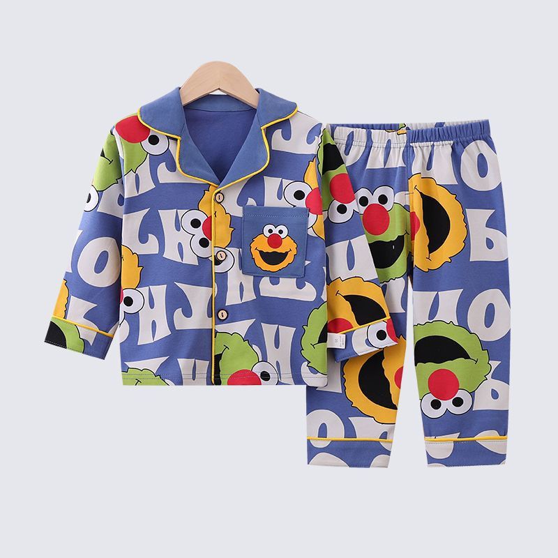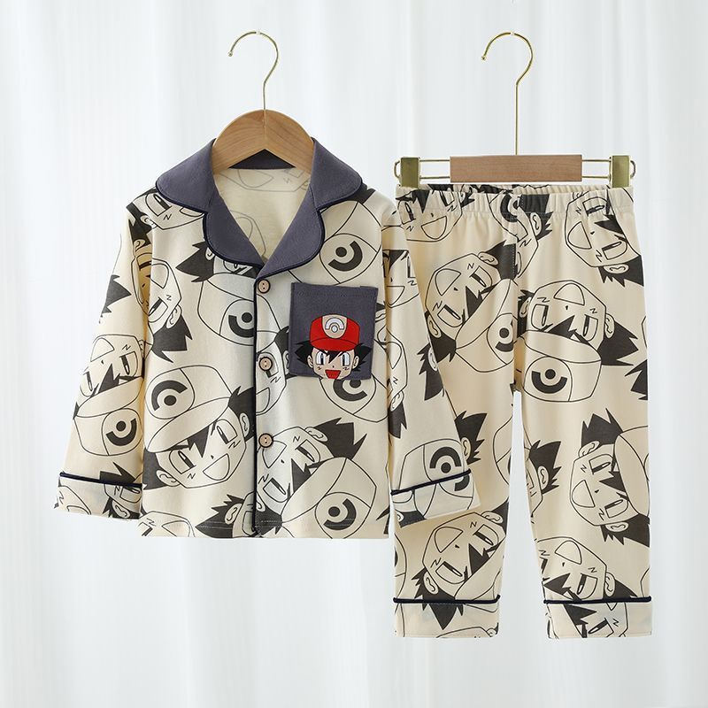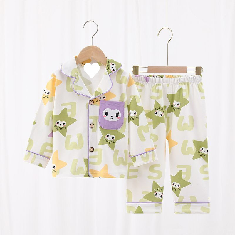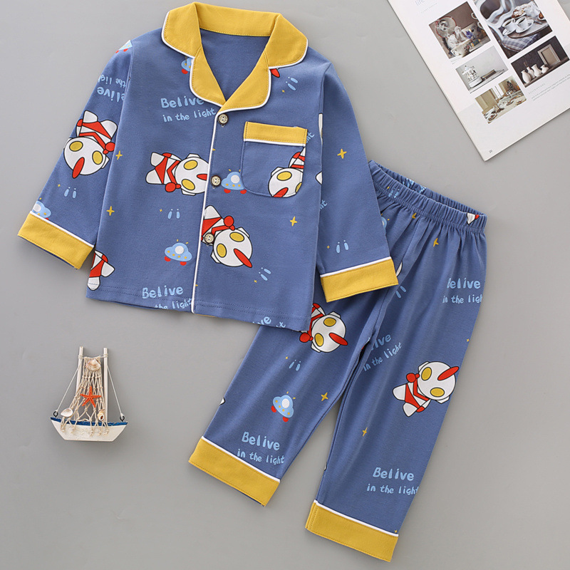 어린이 잠옷 세트 봄과 가을 긴 소매 코튼 파자마 소년 소녀를위한 코튼 카툰 카디건 새 옷 집스토어 가기
