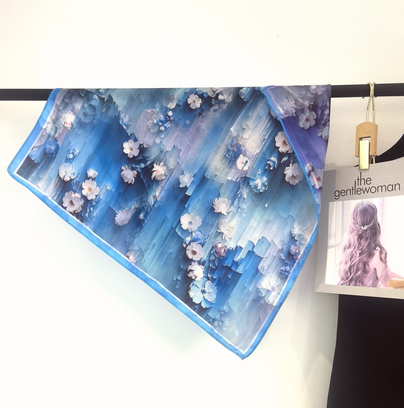 새로운 70cm 벨벳 인쇄 작은 광장 스카프 여성의 여름 선 스크린 스카프 모든 경기 전문 장식 유행 작은 스카프 트렌디스토어 가기