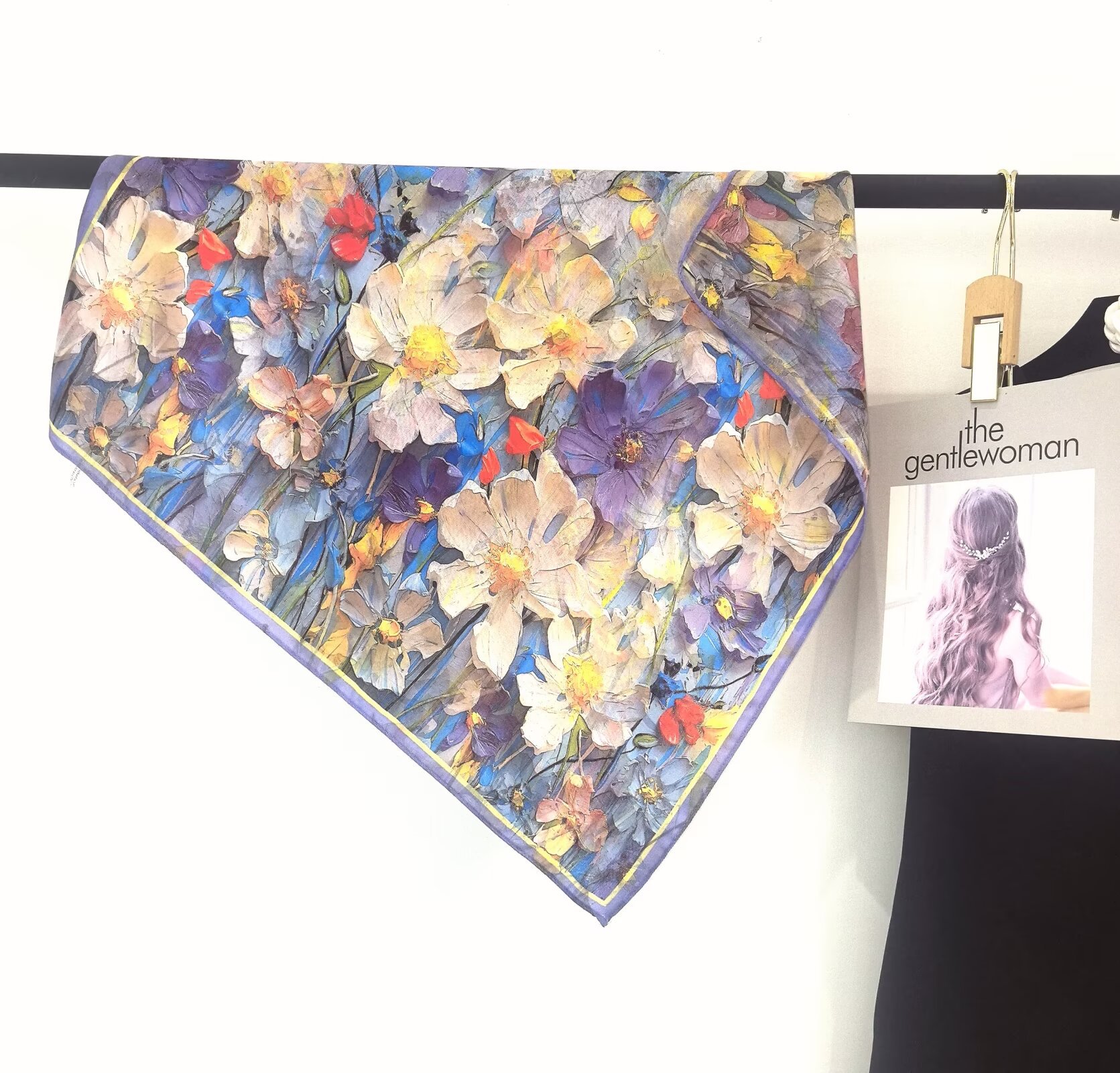 새로운 70cm 벨벳 인쇄 작은 광장 스카프 여성의 여름 선 스크린 스카프 모든 경기 전문 장식 유행 작은 스카프 트렌디
