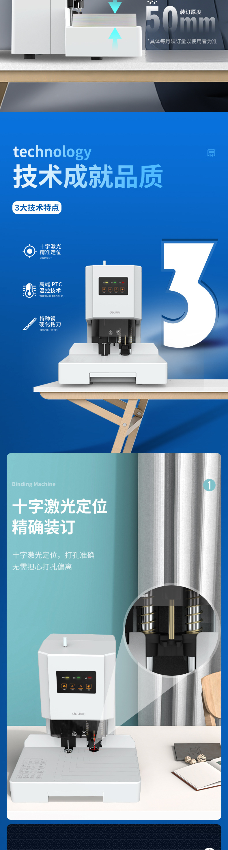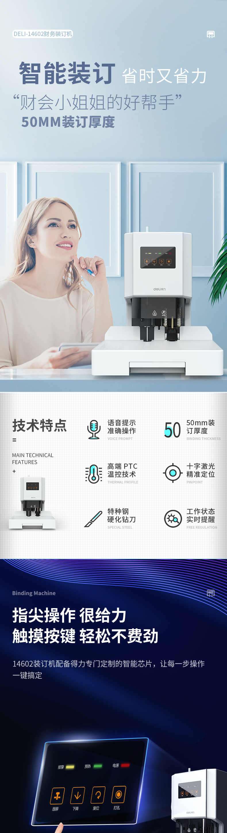 Deli 14602 금융 바인딩 머신 사무실 파일 바우처 자동 펀칭 머신 레이저 포지셔닝 지능형 음성