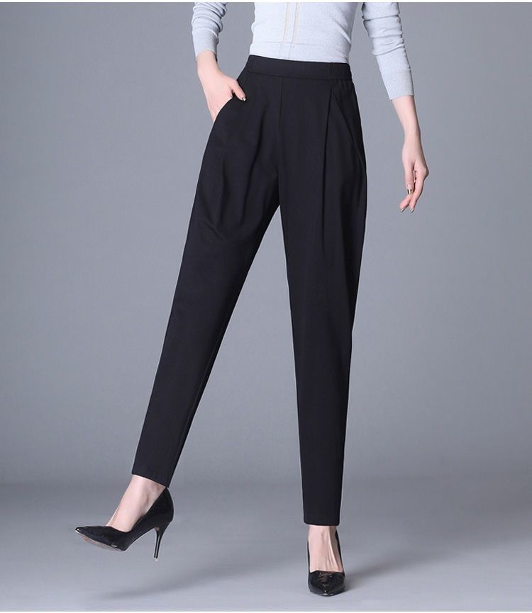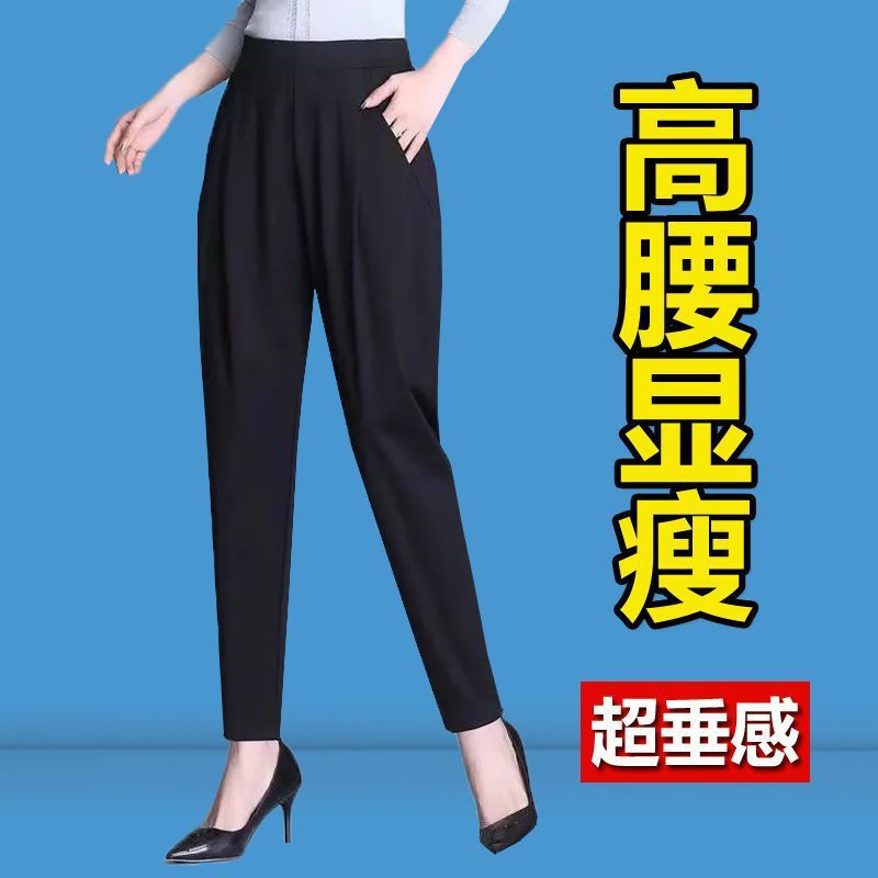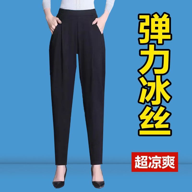 TikTok 같은 얼음 실크 한랑 바지 여성 여름 높은 허리 캐주얼 여성 바지 플러스 사이즈 느슨한 슬리밍 당근 바지스토어 가기