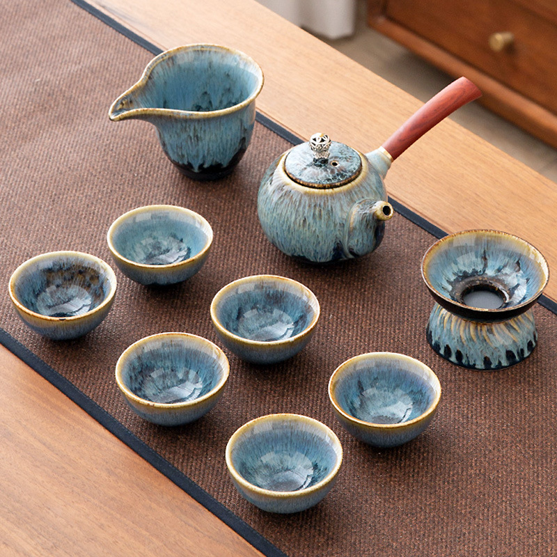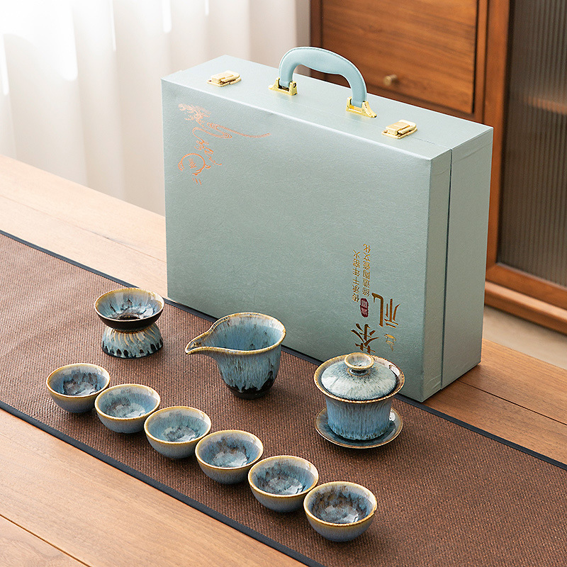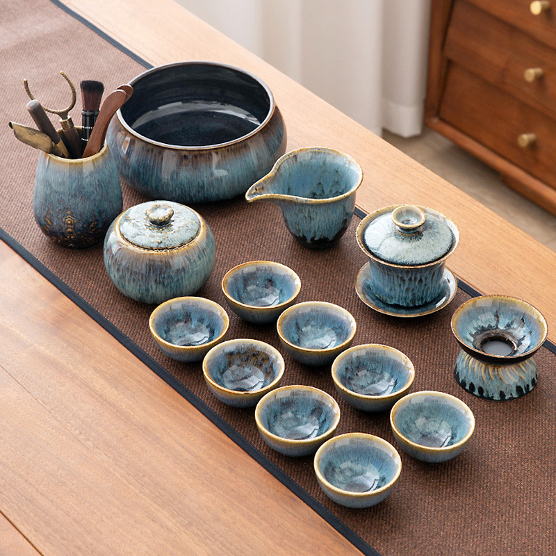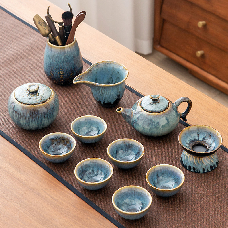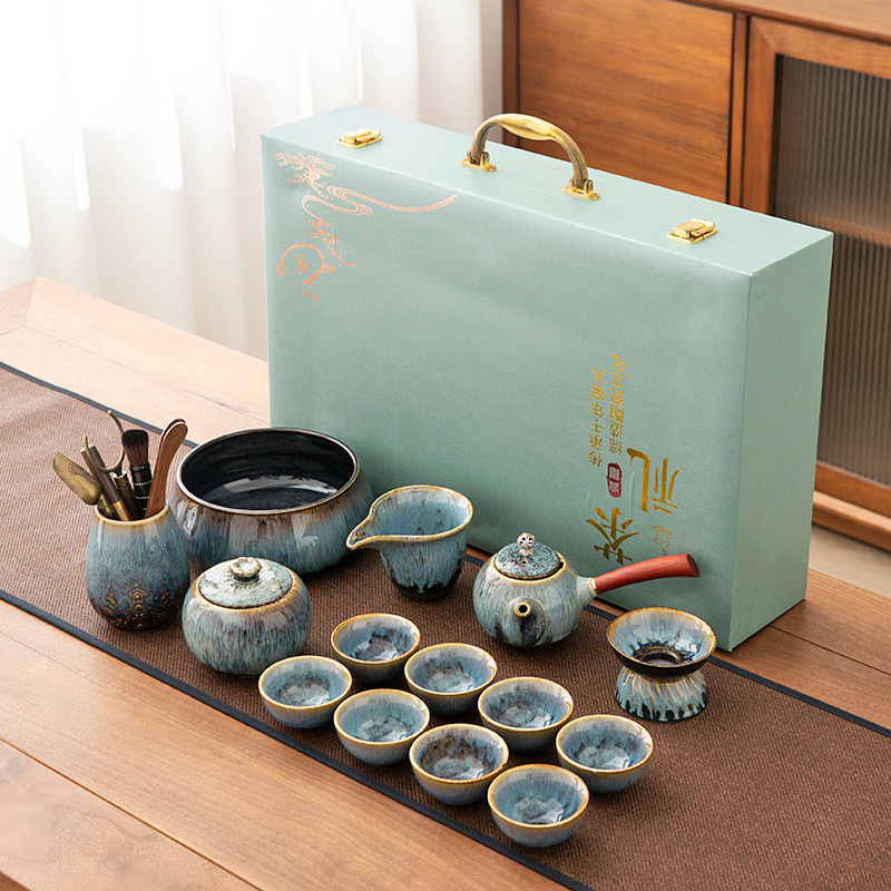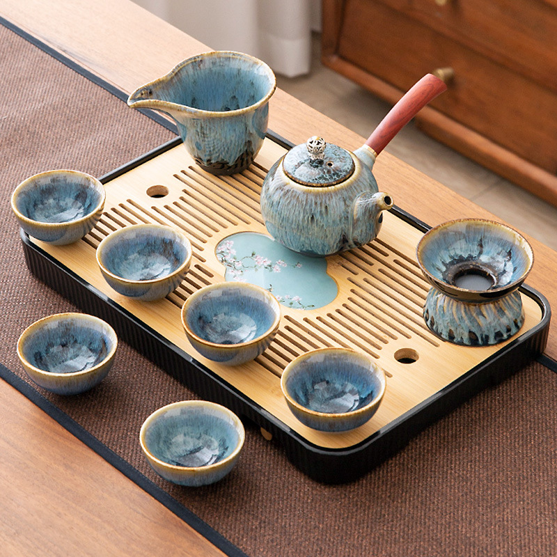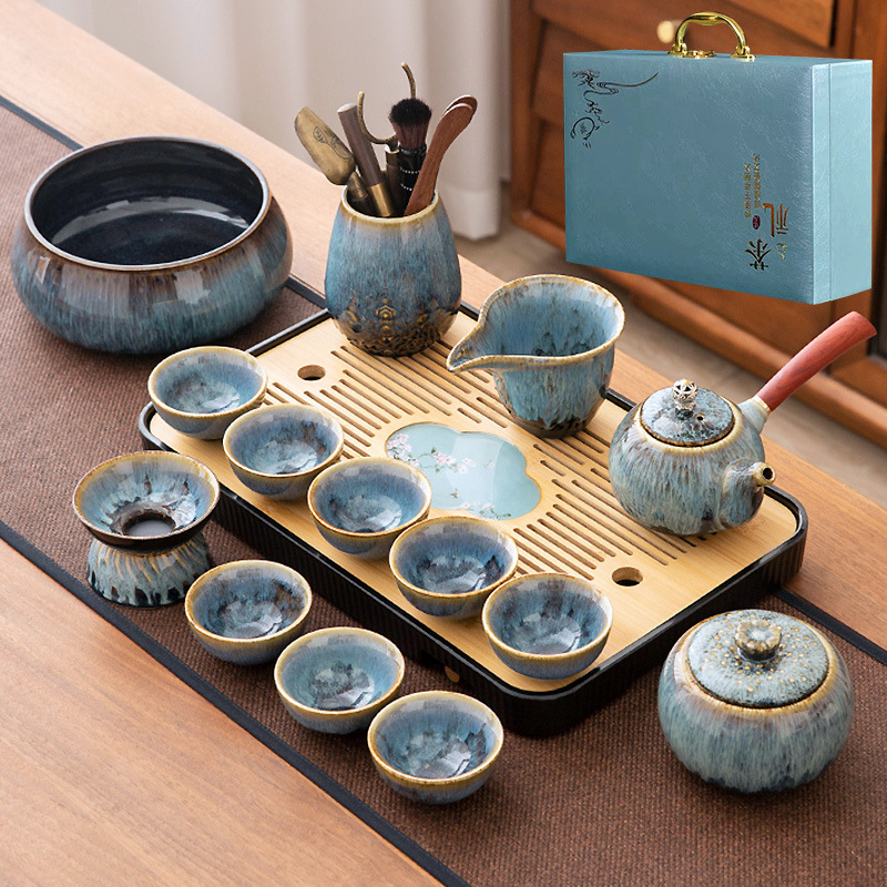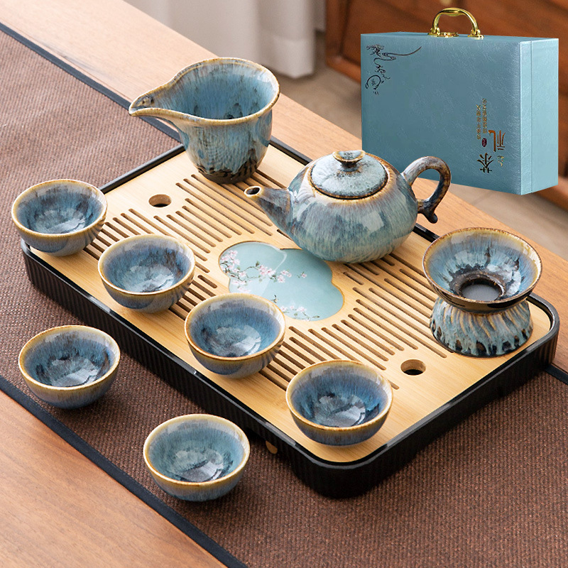 가마 변화 쿵푸 차 세트 세트 가구 빛 럭셔리 세라믹 주전자 커버 그릇 티 컵 작은 차 트레이 오피스 완전한 세트