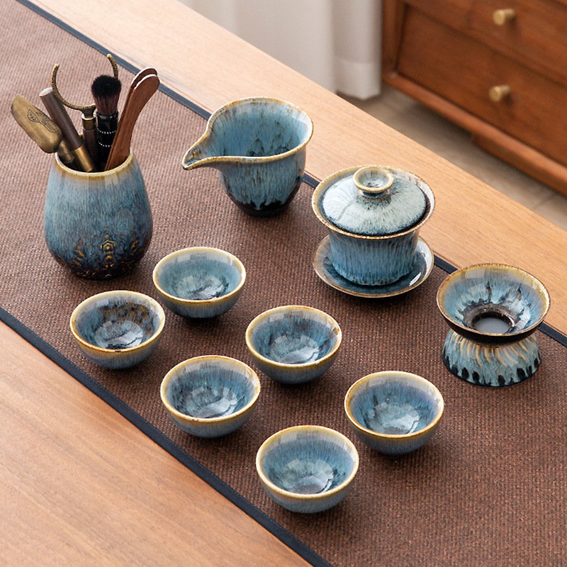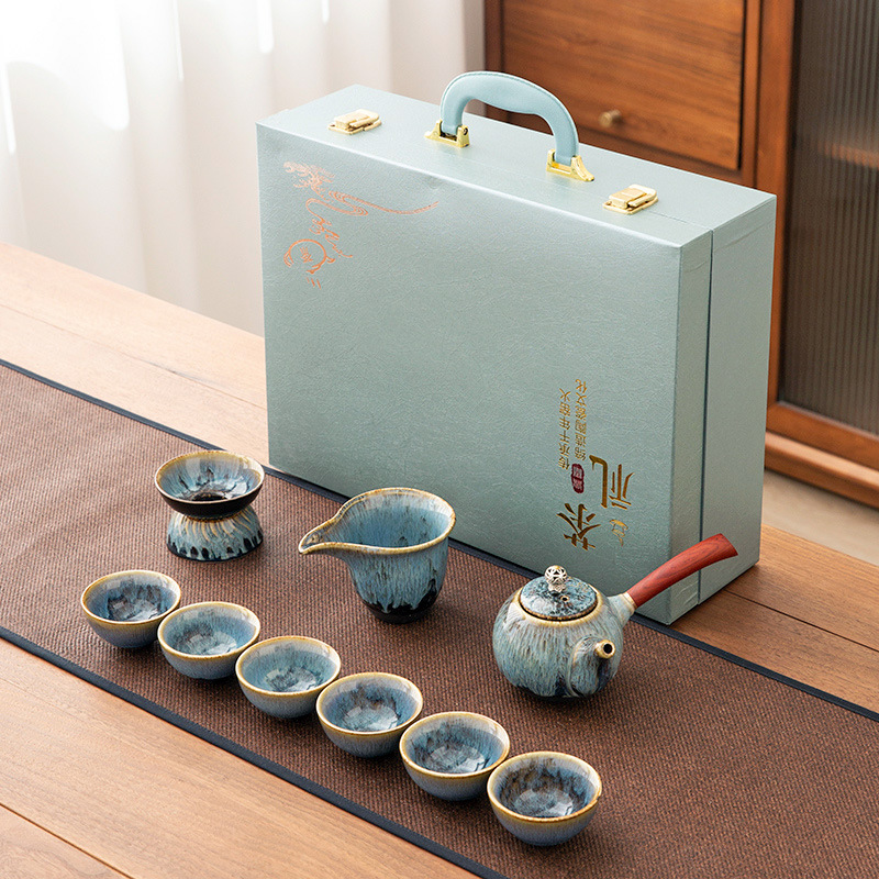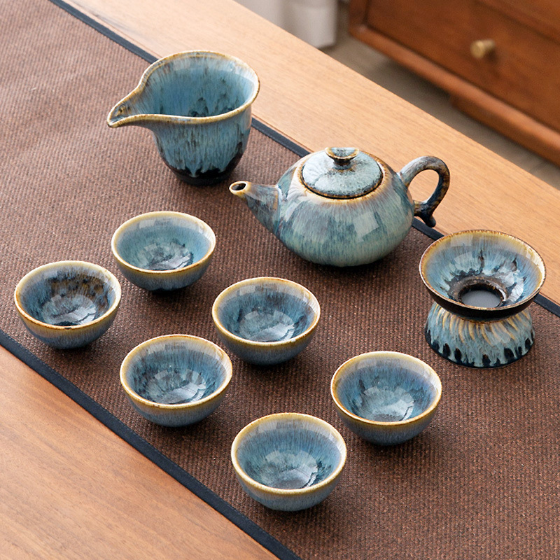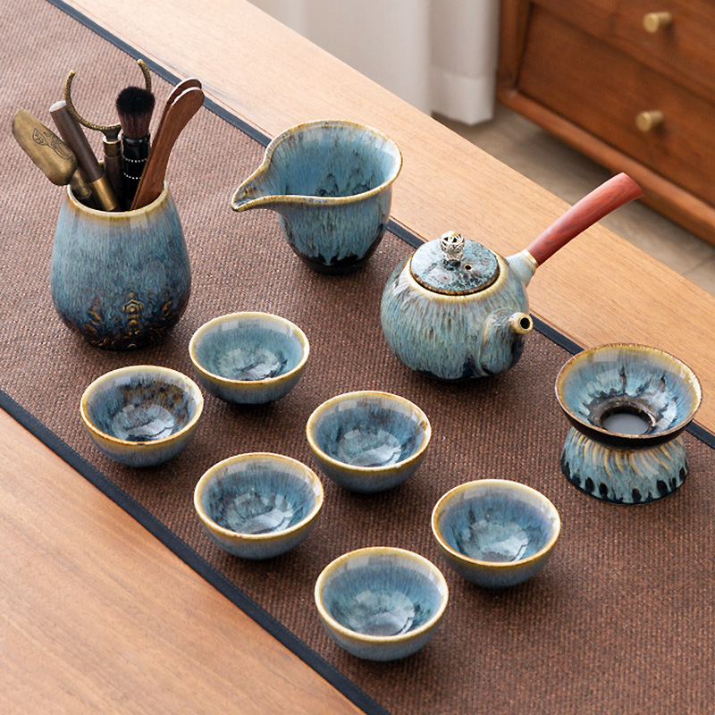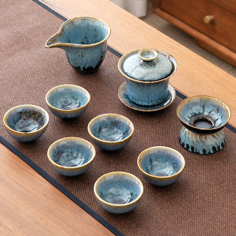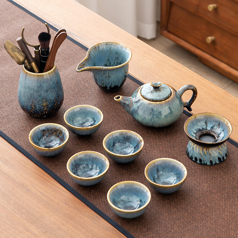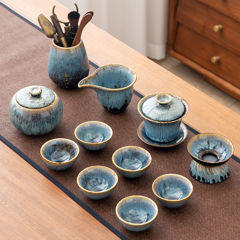 가마 변화 쿵푸 차 세트 세트 가구 빛 럭셔리 세라믹 주전자 커버 그릇 티 컵 작은 차 트레이 오피스 완전한 세트