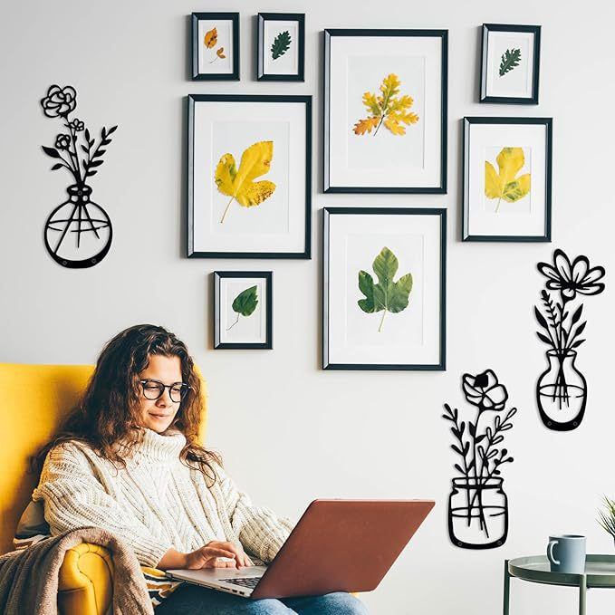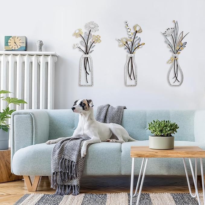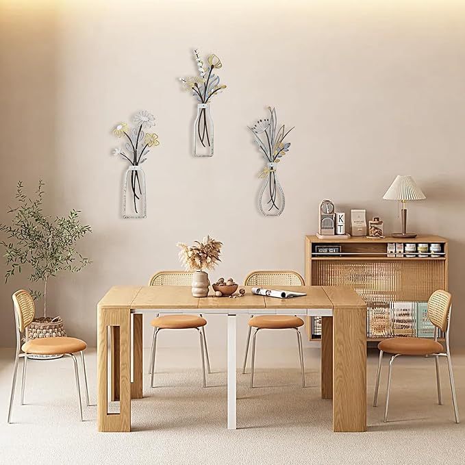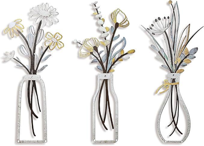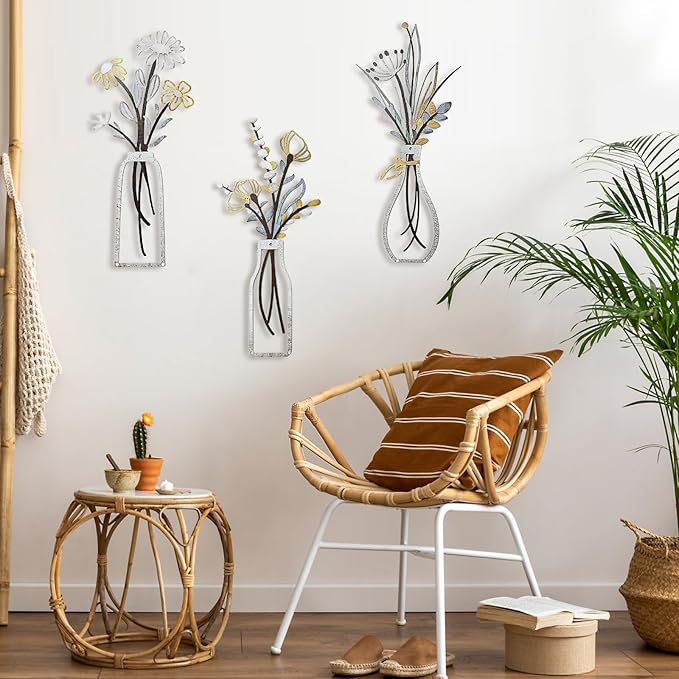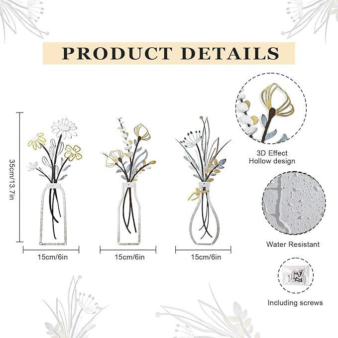 거실 침실 식당을위한 베이지 색 미니멀 한 꽃 벽 장식 금속 꽃 벽 예술 소박한 농가 장식스토어 가기