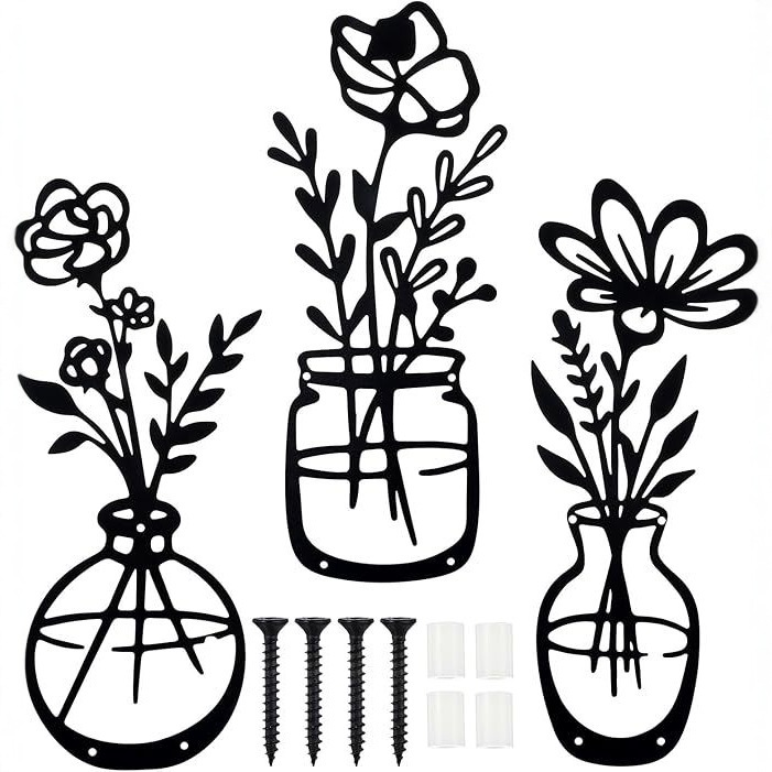 거실 침실 식당을위한 베이지 색 미니멀 한 꽃 벽 장식 금속 꽃 벽 예술 소박한 농가 장식