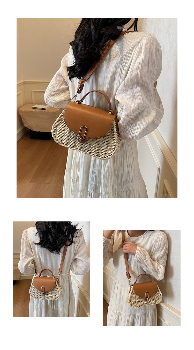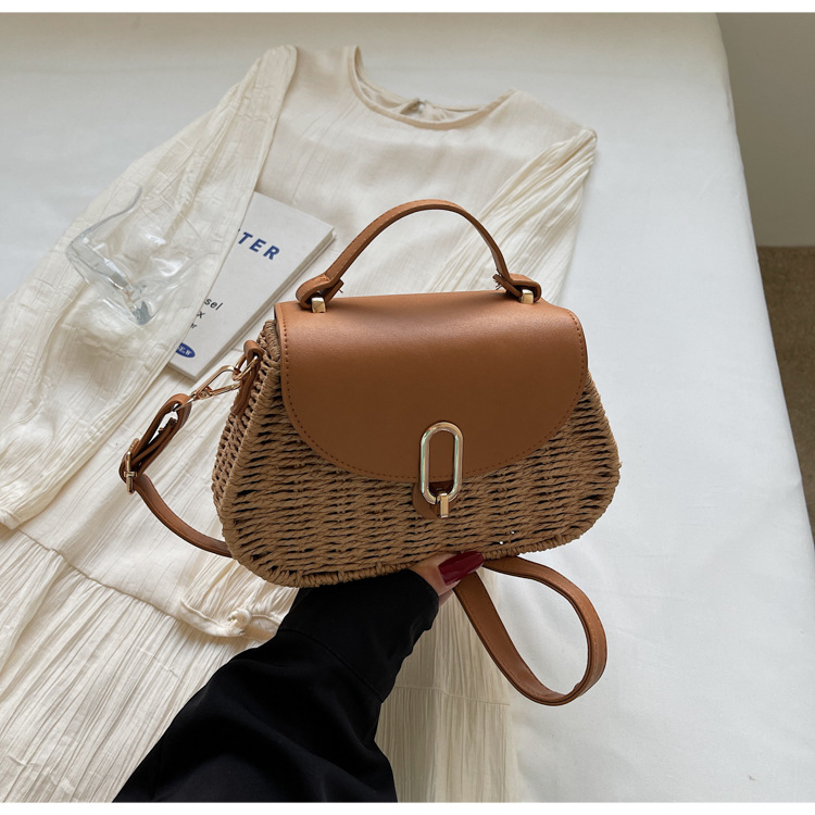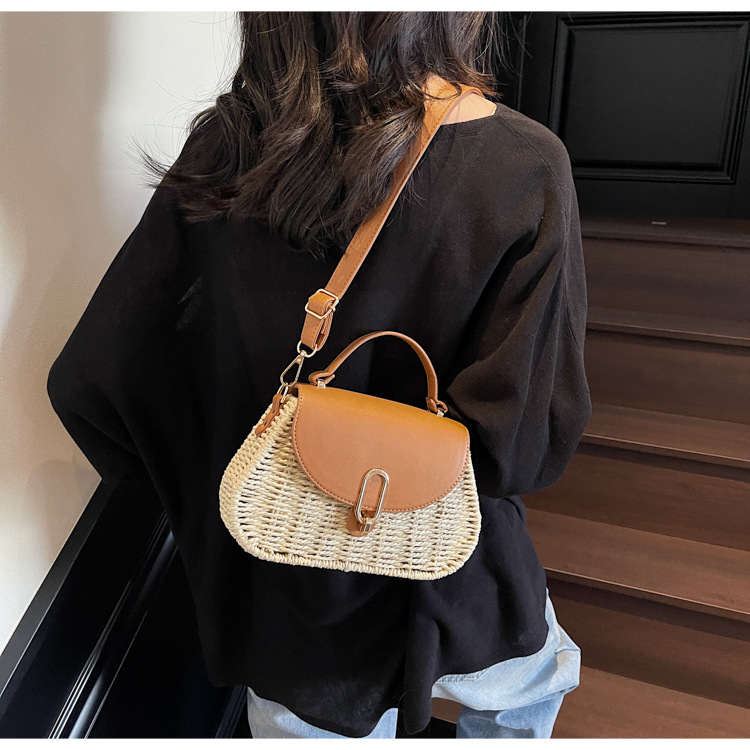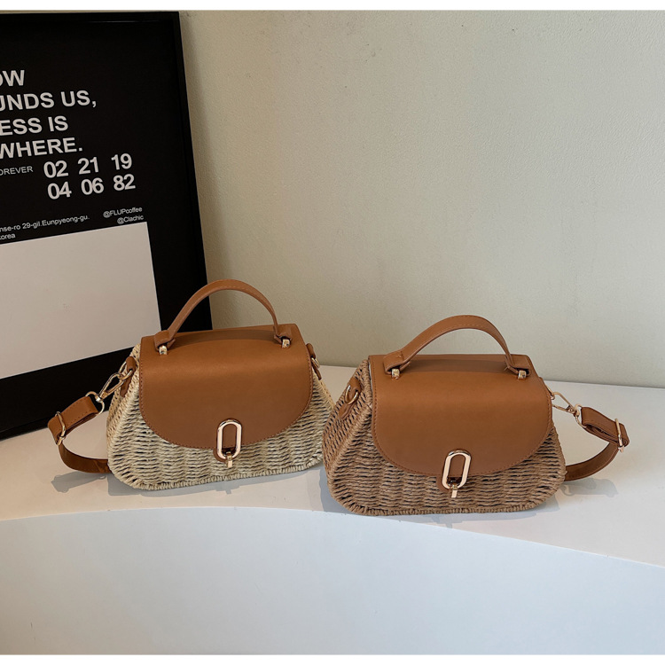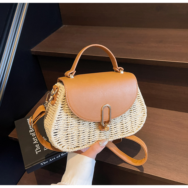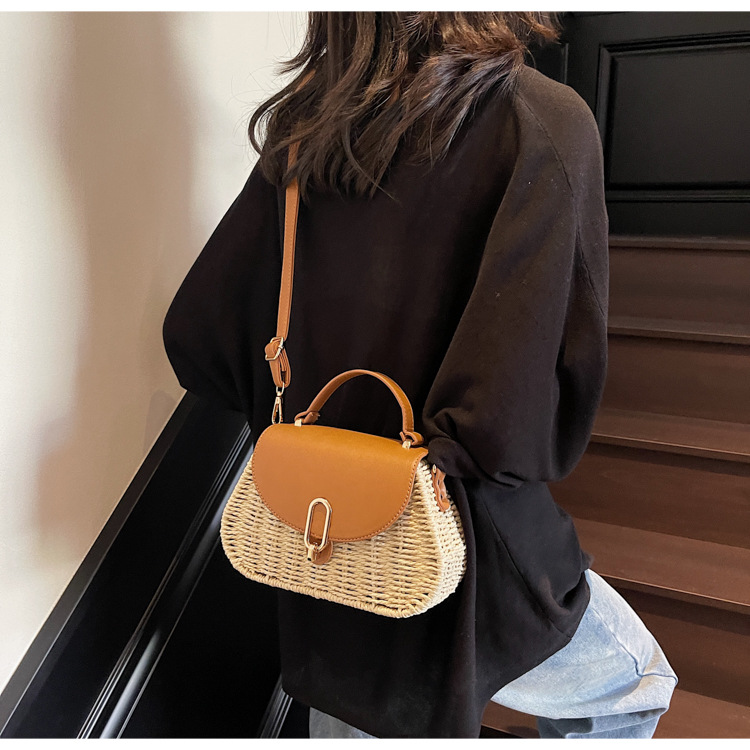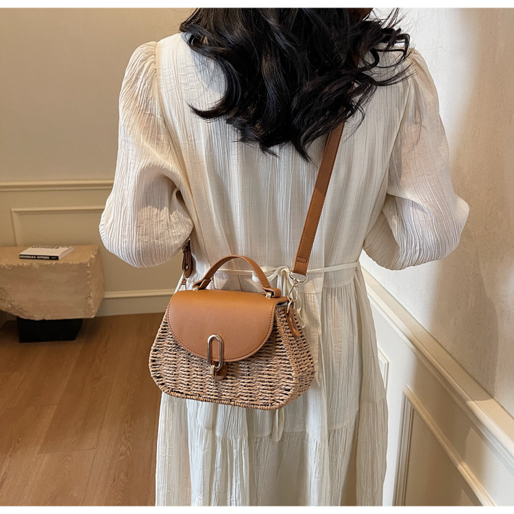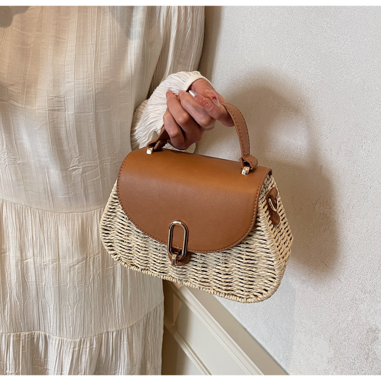 새로운 여름 2025 밀짚 가방 여성 크로스 바디 작은 가방 신선한 스타일 등나무 크로스 바디 핸드백 쌀 중간스토어 가기