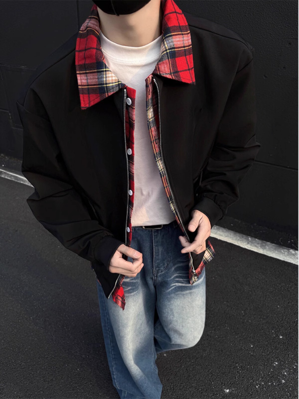 올드 Qian Feng 페이크 투피스 재킷 남자 2025 봄 새로운 스티칭 대조 컬러 느슨한 클린 핏 플라잉 세트 재킷스토어 가기