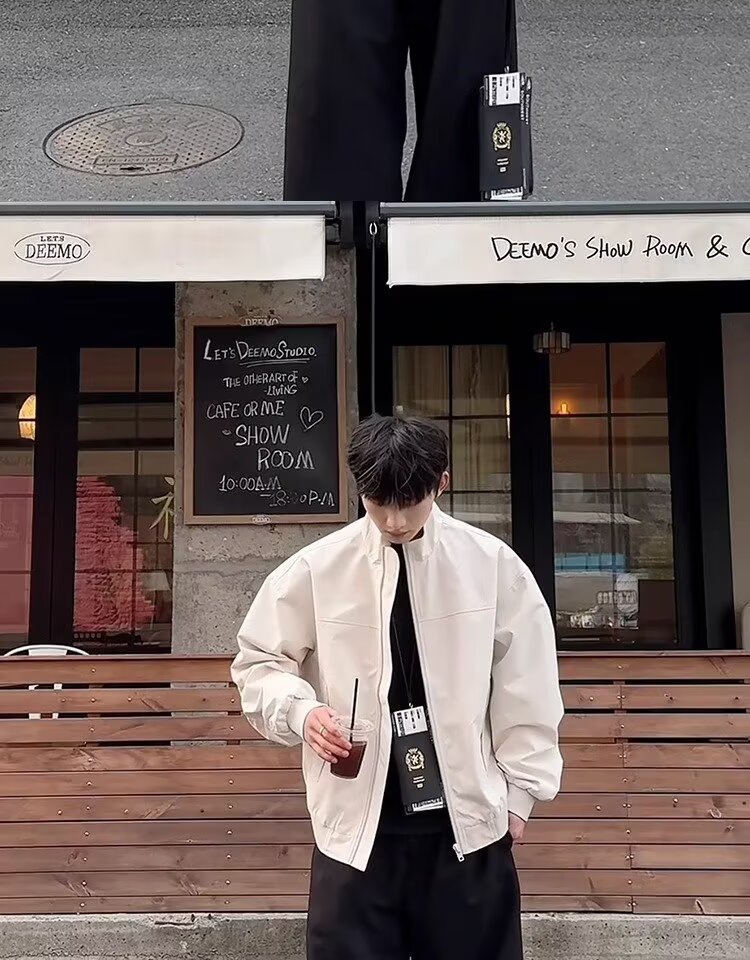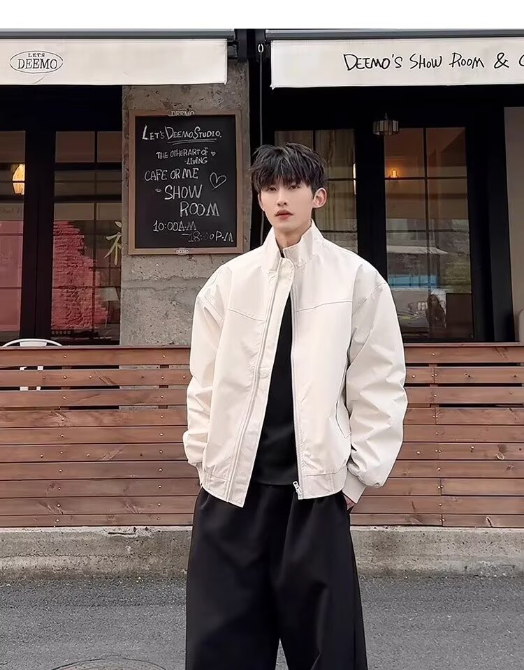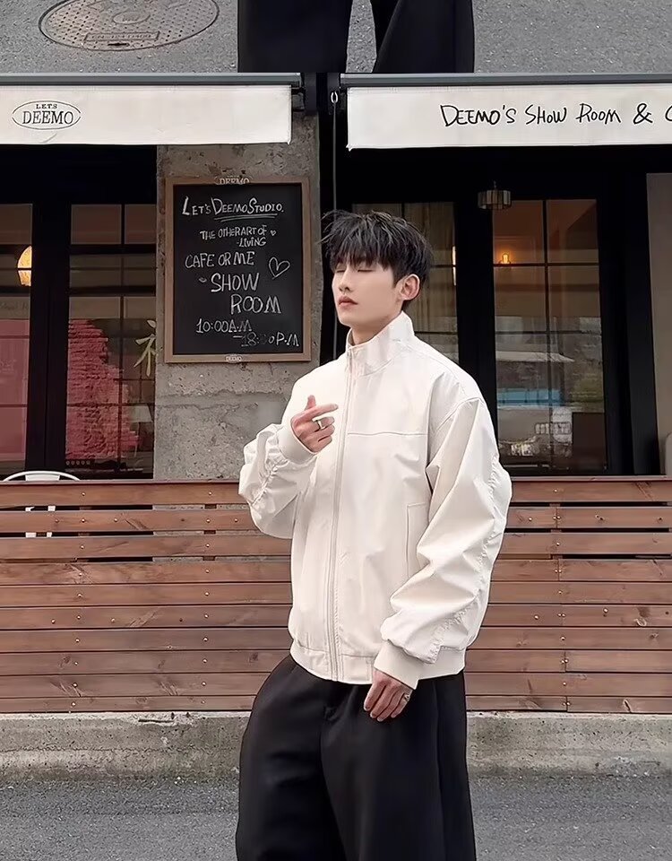 미국식 3 방위 강사 폭격기 재킷 남자 살구색 수직 칼라 야외 충전 재킷 클린 핏 짧은 재킷스토어 가기