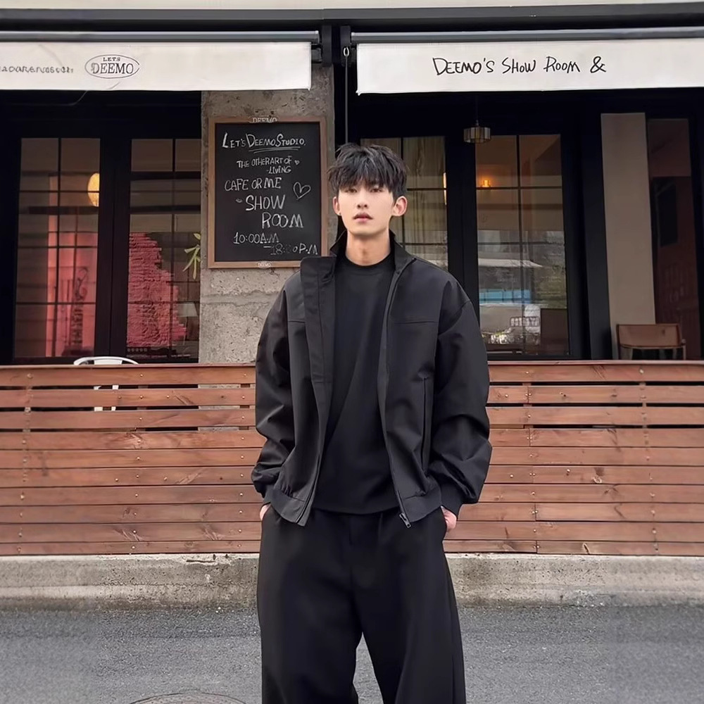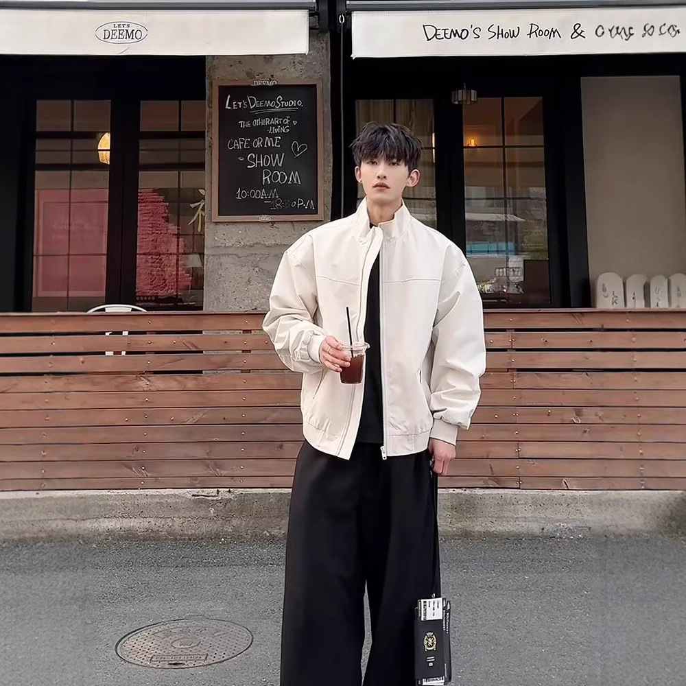 미국식 3 방위 강사 폭격기 재킷 남자 살구색 수직 칼라 야외 충전 재킷 클린 핏 짧은 재킷