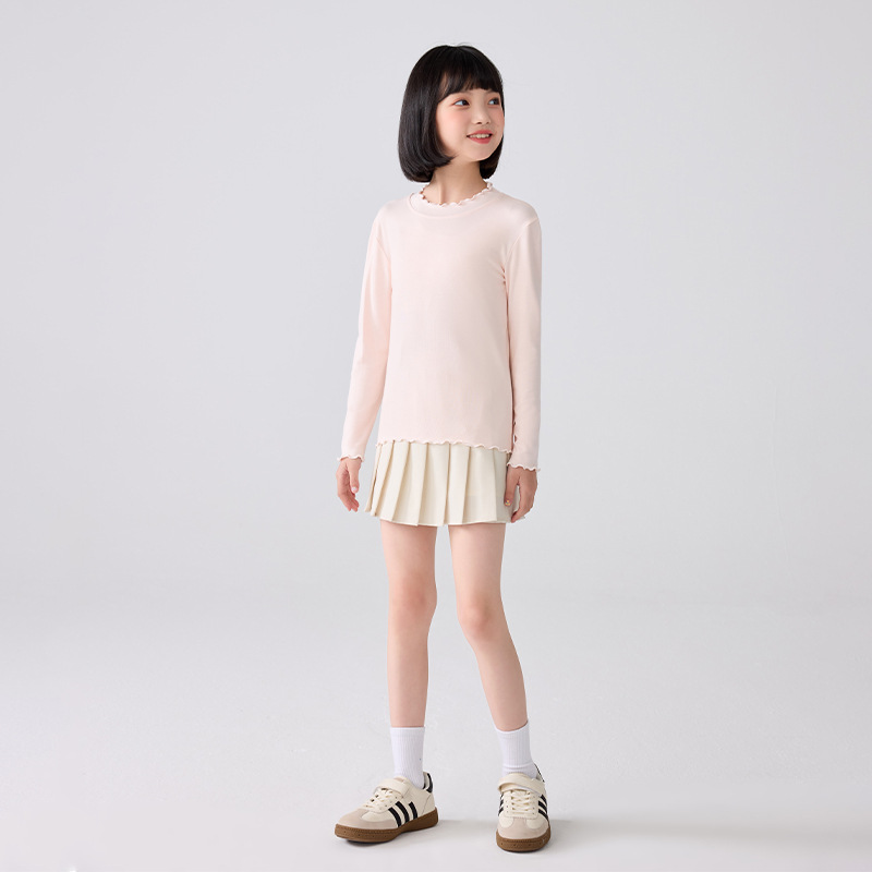여아용 곰팡이 레이스 칼라 바닥 셔츠, 아동용 봄, 가을 모달 탑, 여아용 봄, 여름 긴팔 다용도 티셔츠