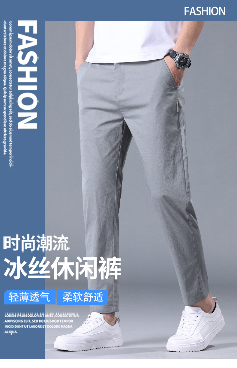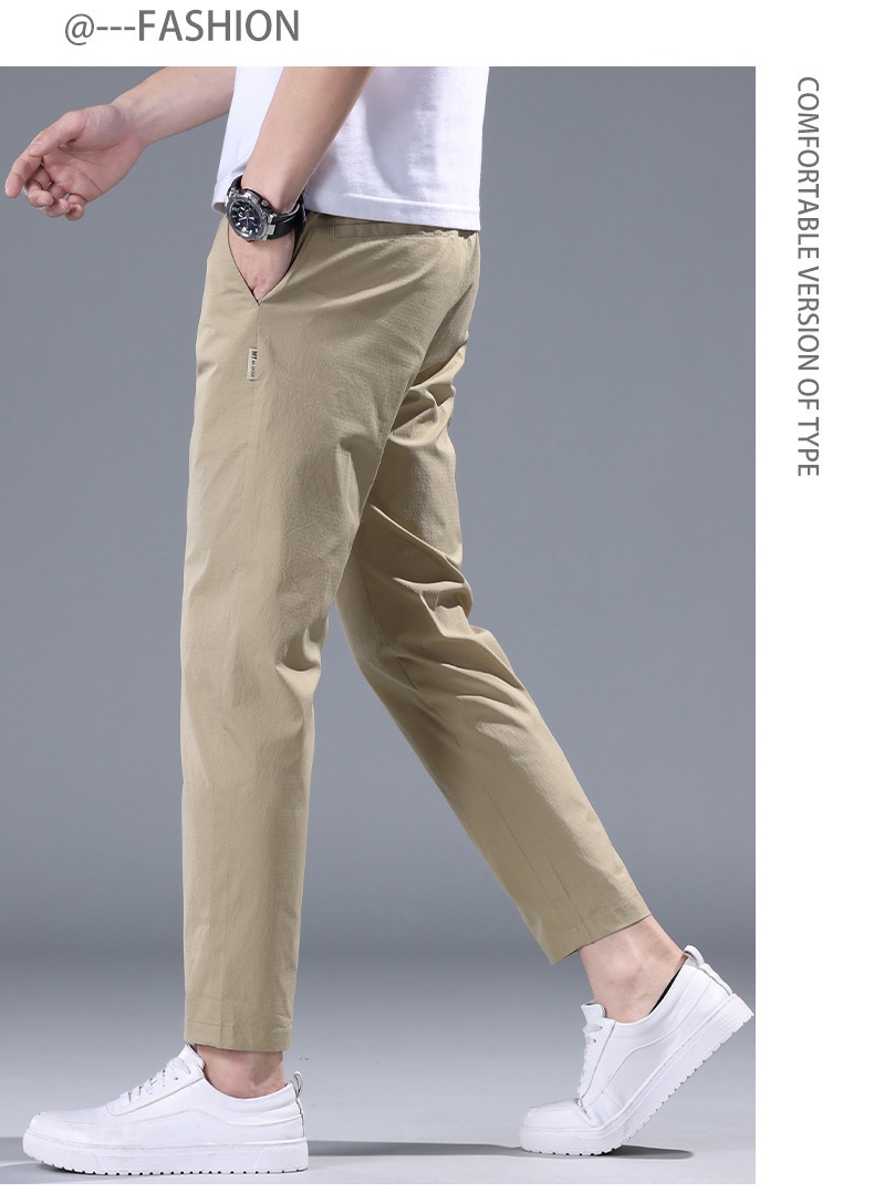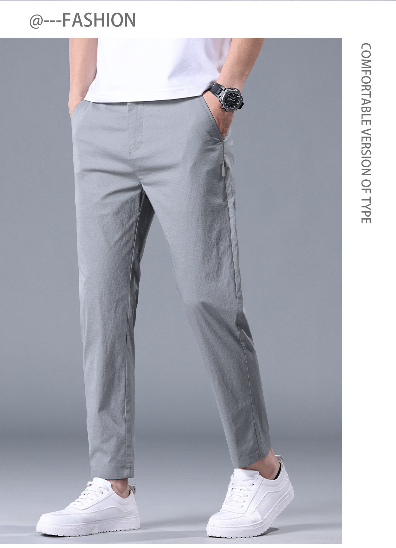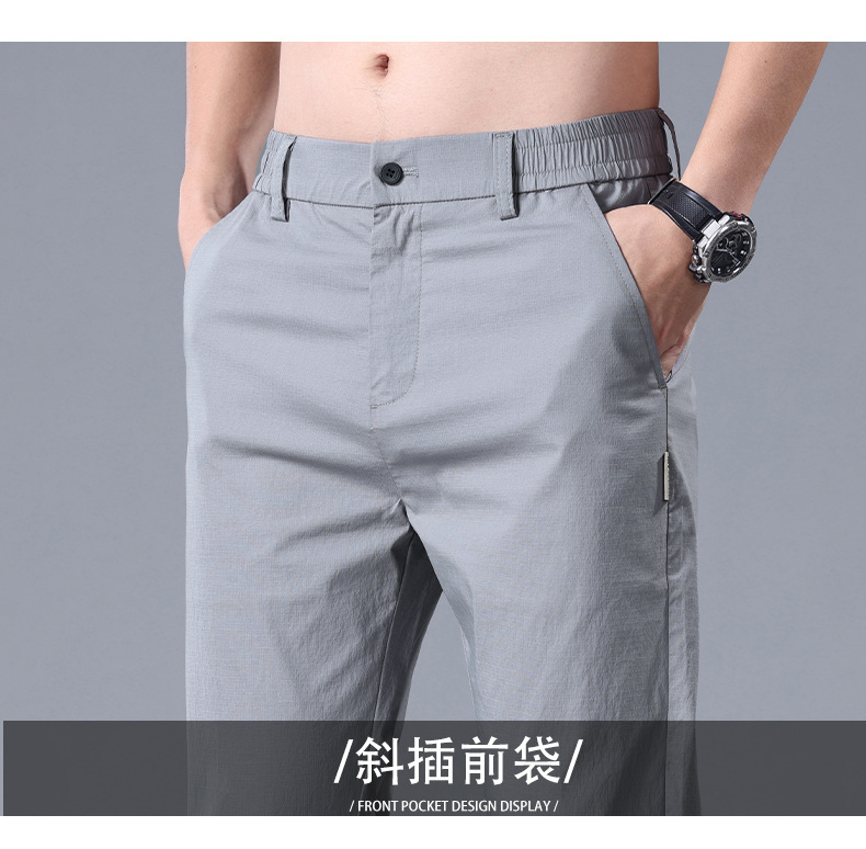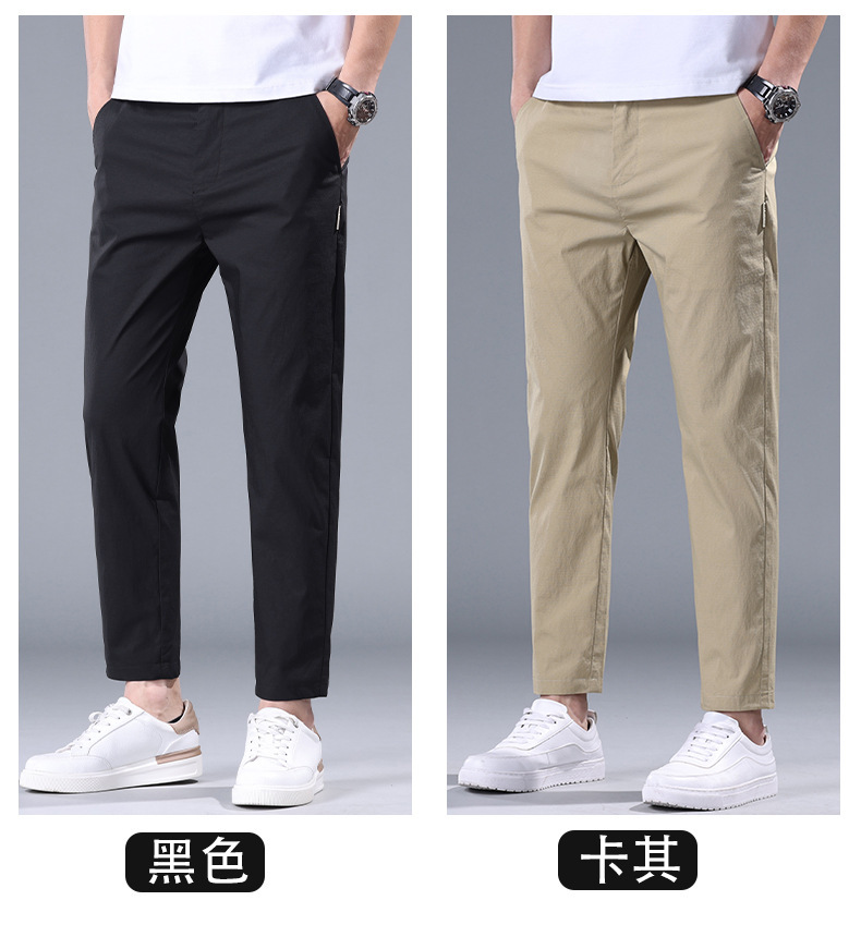 2025 남자 여름 얇은 자른 바지 솔리드 컬러 올 매치 느슨한 스트레치 스트레이트 바지 캐주얼 바지 남자 TikTok 폭발스토어 가기