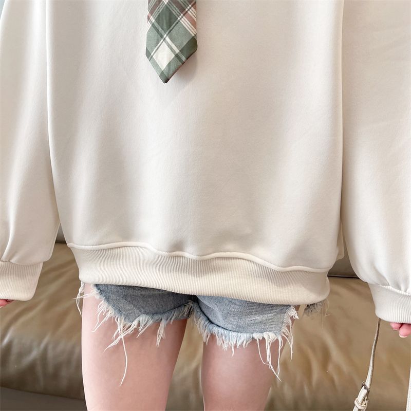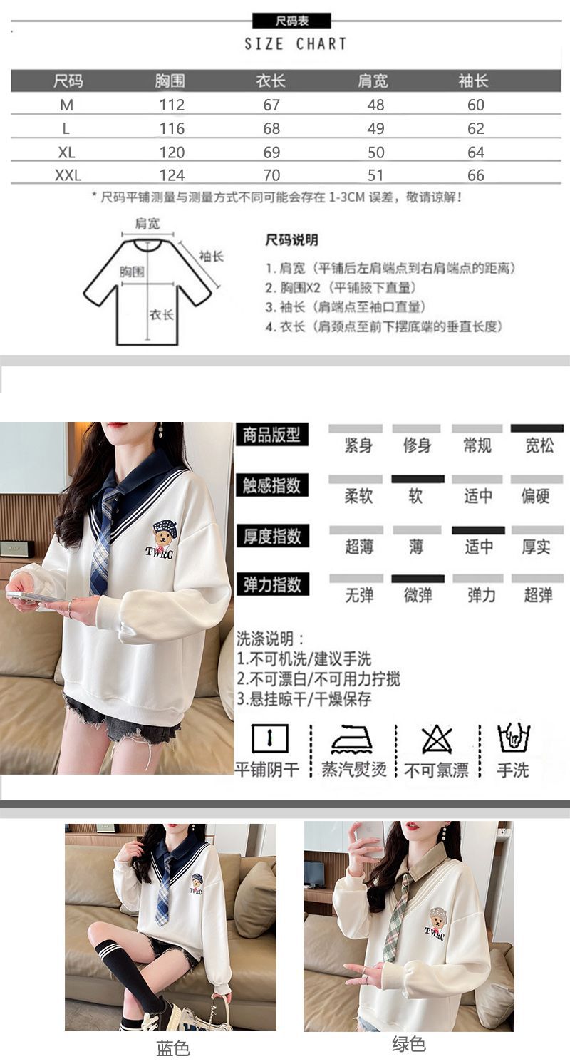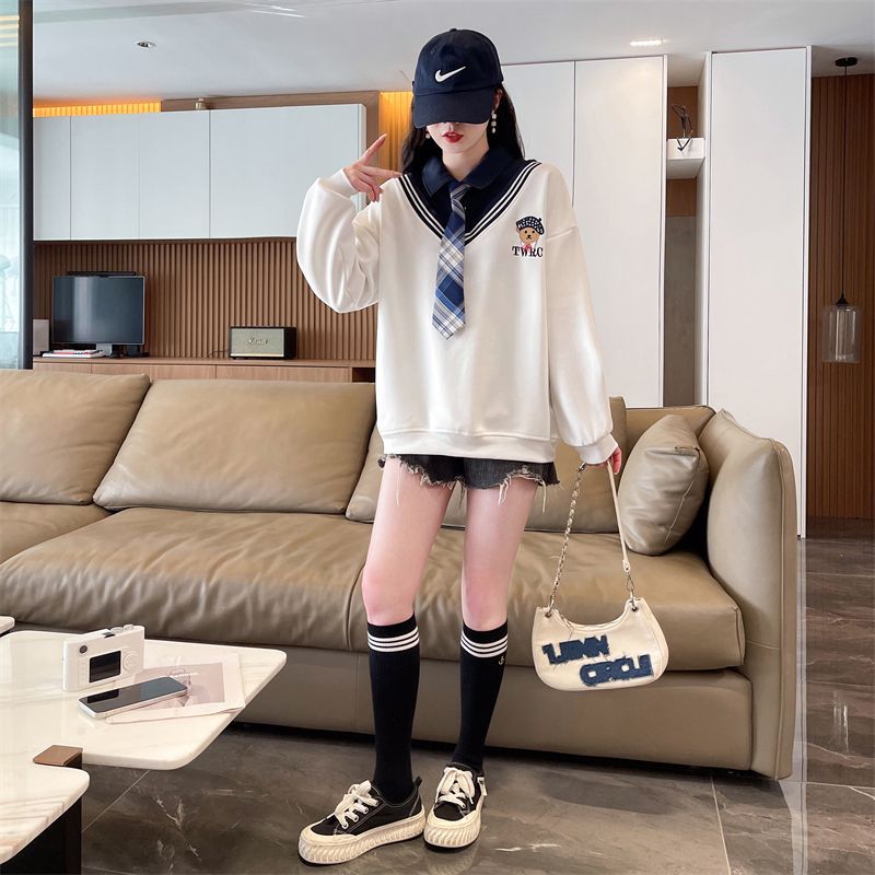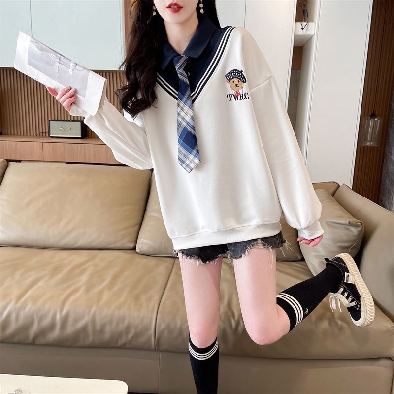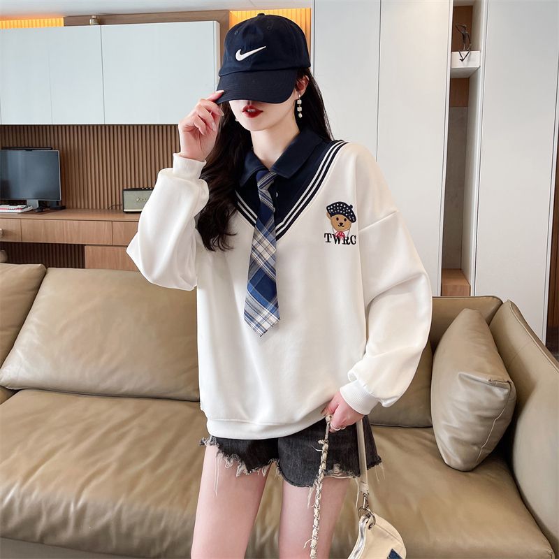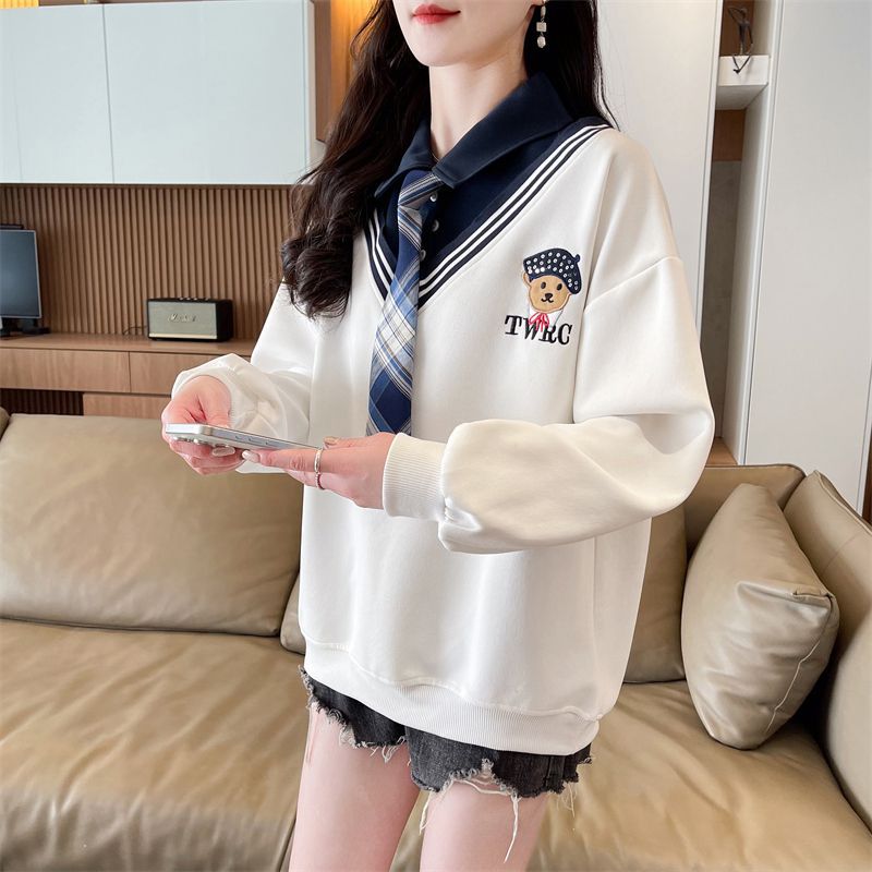 가짜 투피스 스티치 스웨트 여성 봄과 가을 자수 베어 하이 엔드 루즈 스타일 라지 스타일 옷깃 중학교 탑