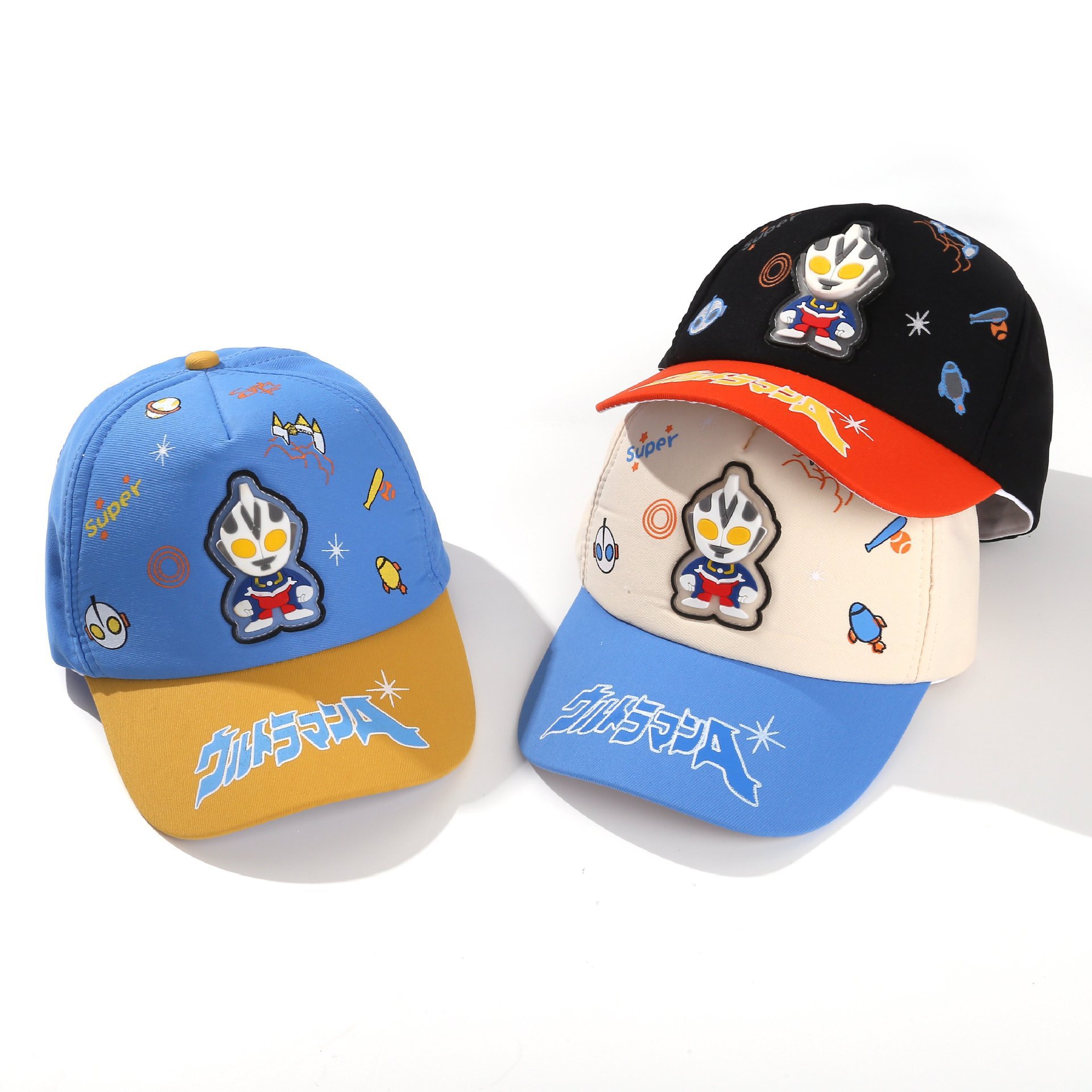소년과 소녀를위한 새로운 귀여운 울트라 맨 소년 야구 모자 만화 올 매치 캡 야외 태양 음영