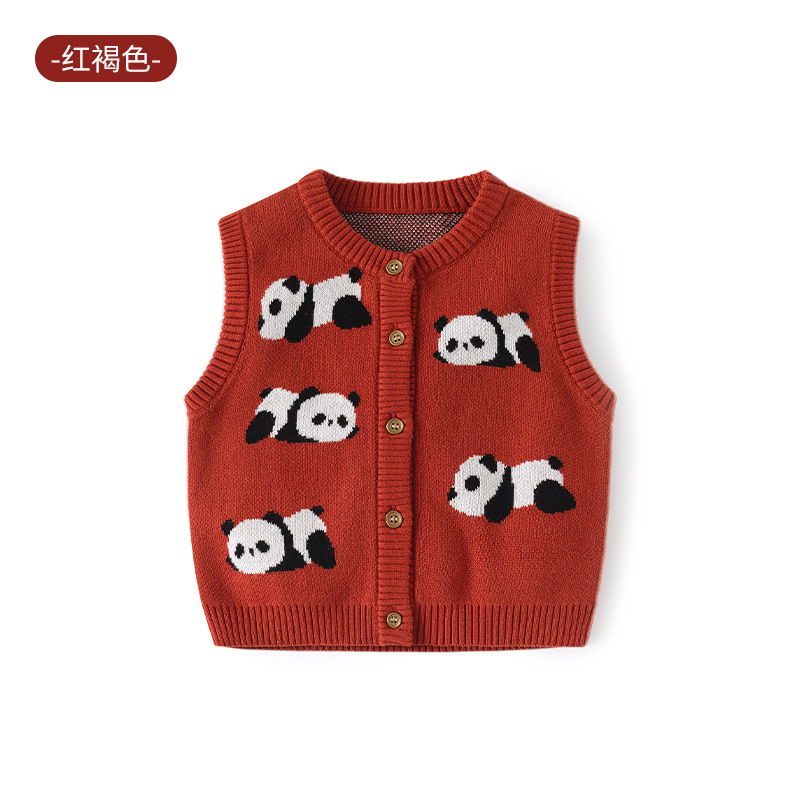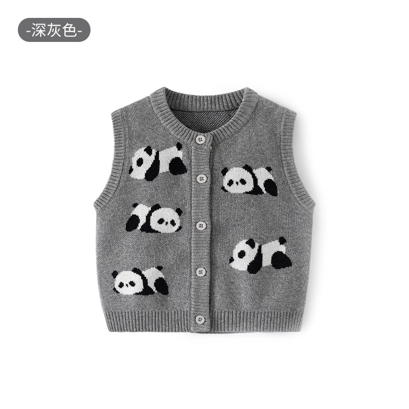 팬더 니트 순면 아기 조끼 A급 가을 만화 어린이 조끼 카디건 부드러운 아기 조끼