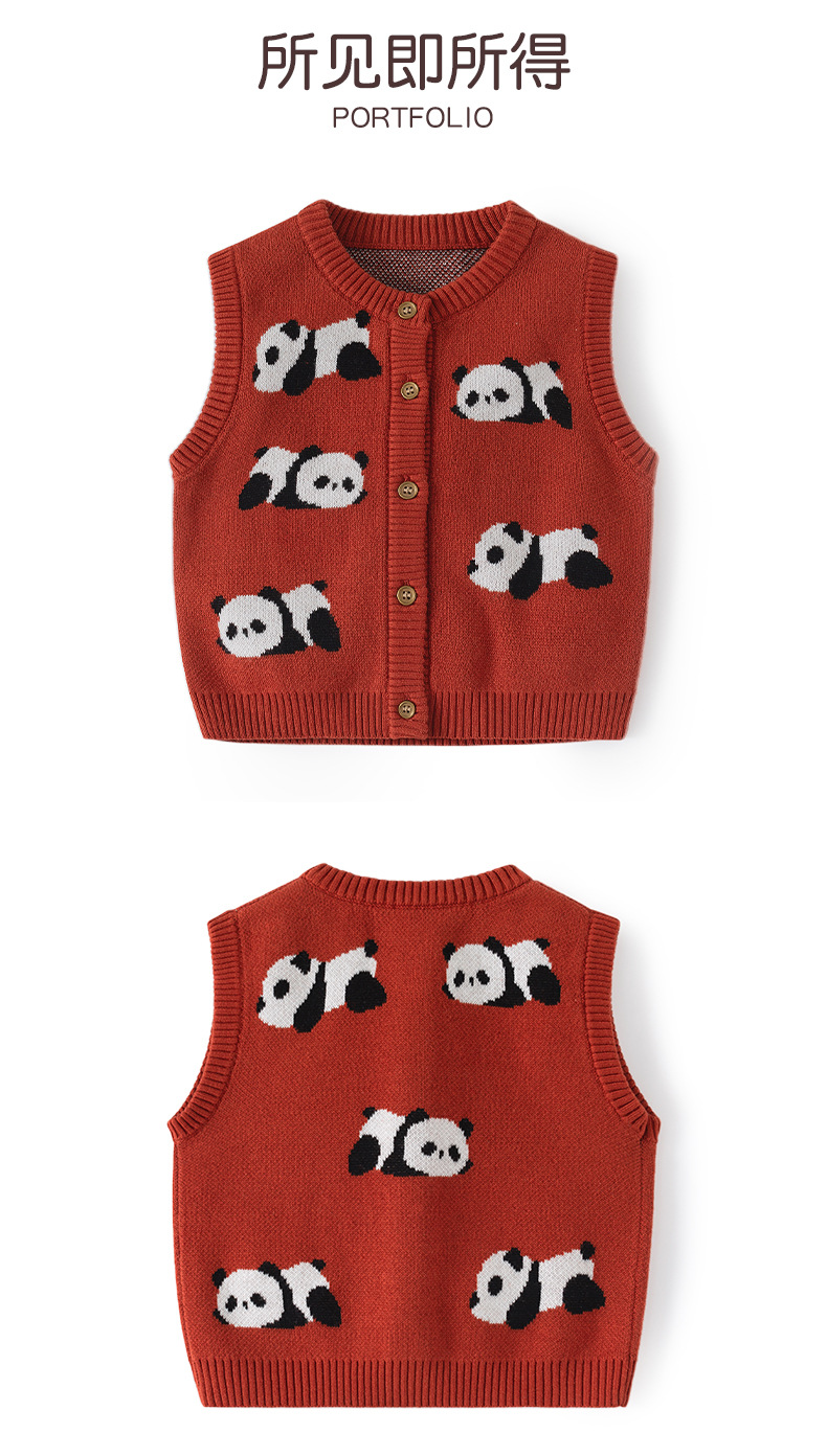 팬더 니트 순면 아기 조끼 A급 가을 만화 어린이 조끼 카디건 부드러운 아기 조끼스토어 가기