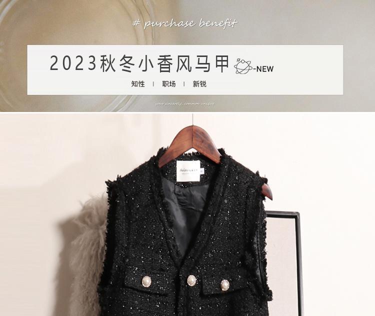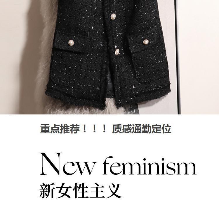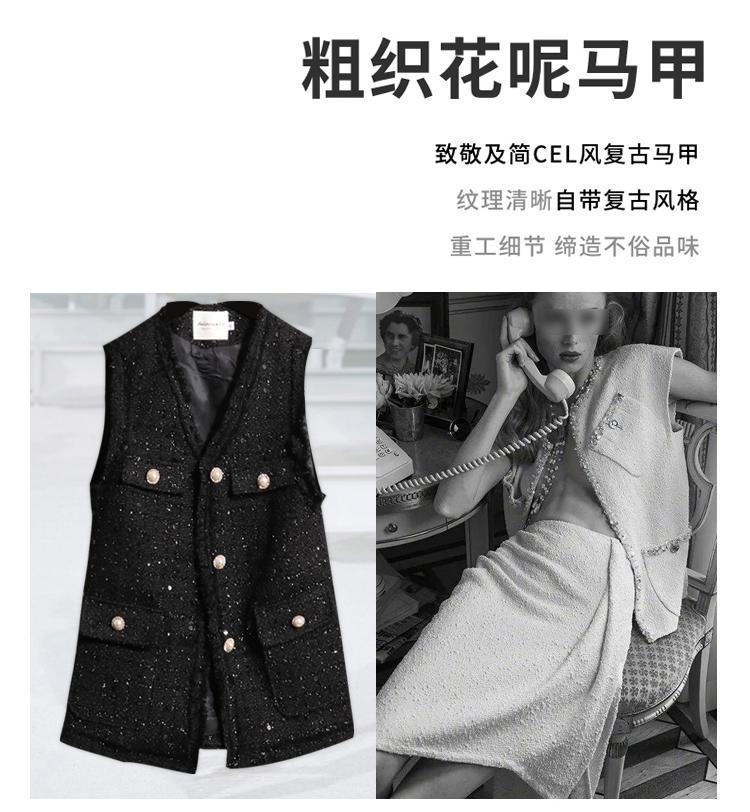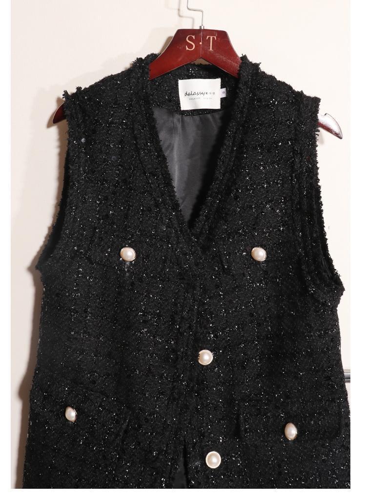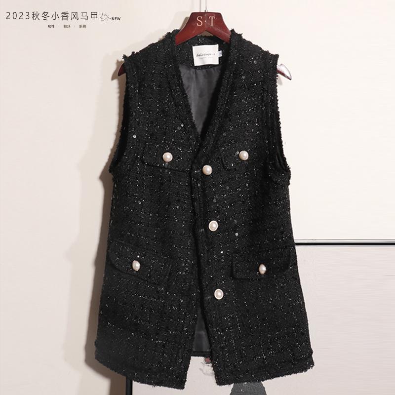 Xiaoxiang 스타일 조끼 여성 봄과 가을 2025 새로운 양복 조끼 긴 플러스 사이즈 느슨한 스팽글 트위드 조끼 블랙스토어 가기