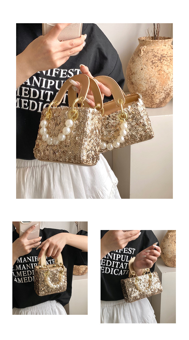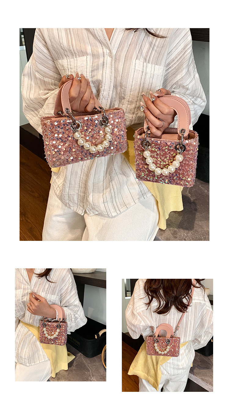 Daffy Bag 여성의 2025 새로운 하이 엔드 센스 세퀸 크로스 바디 작은 광장 가방 세련된 미니 구슬 핸드 백