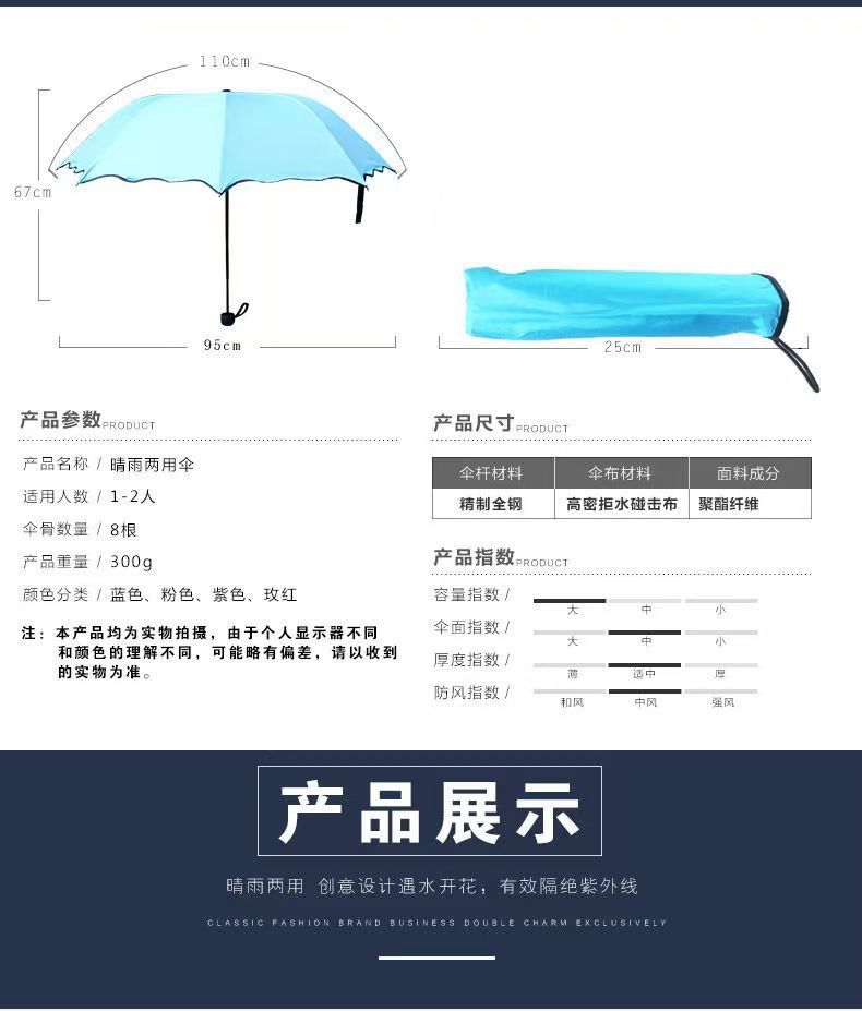 물에 닿으면 꽃이 피는 여름용 양산, 햇빛 가리개 겸용 수동 우산, 자외선 차단 양산, 접이식 우산, 태양 우산 도매스토어 가기