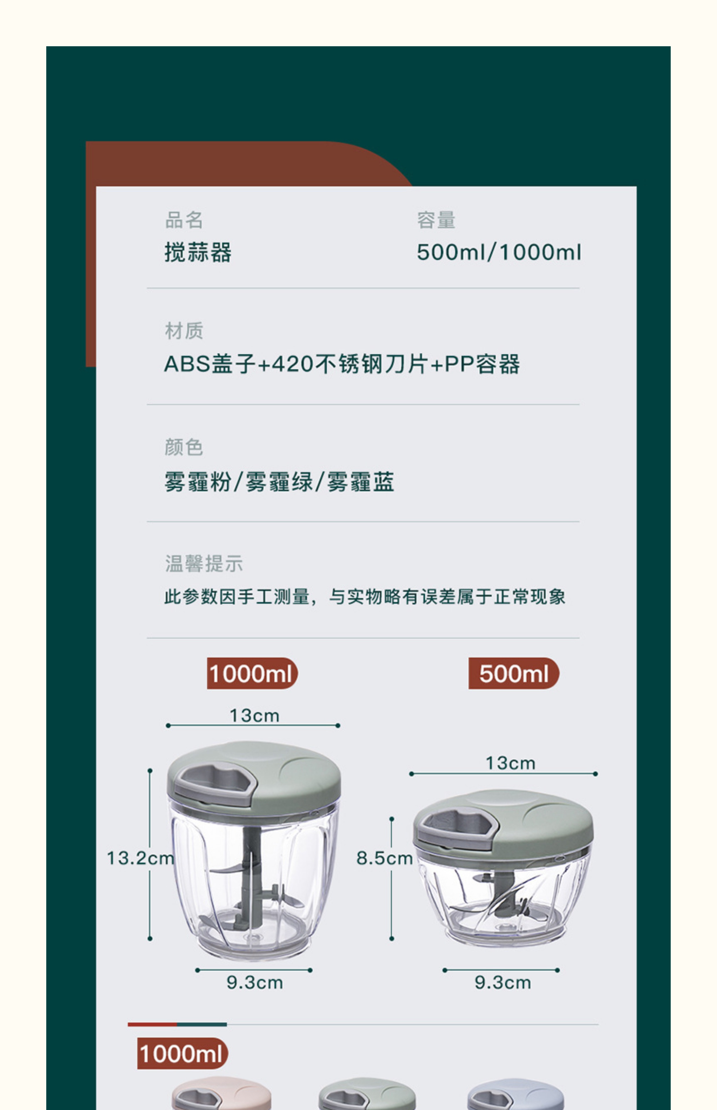 • [블루 3날 500ml] 중형(/예비칼 포함)