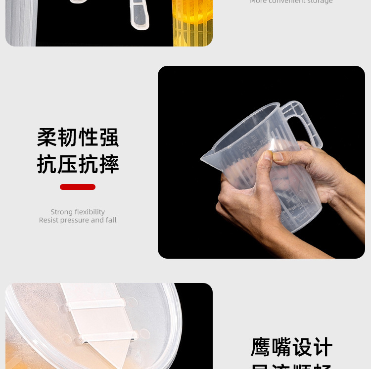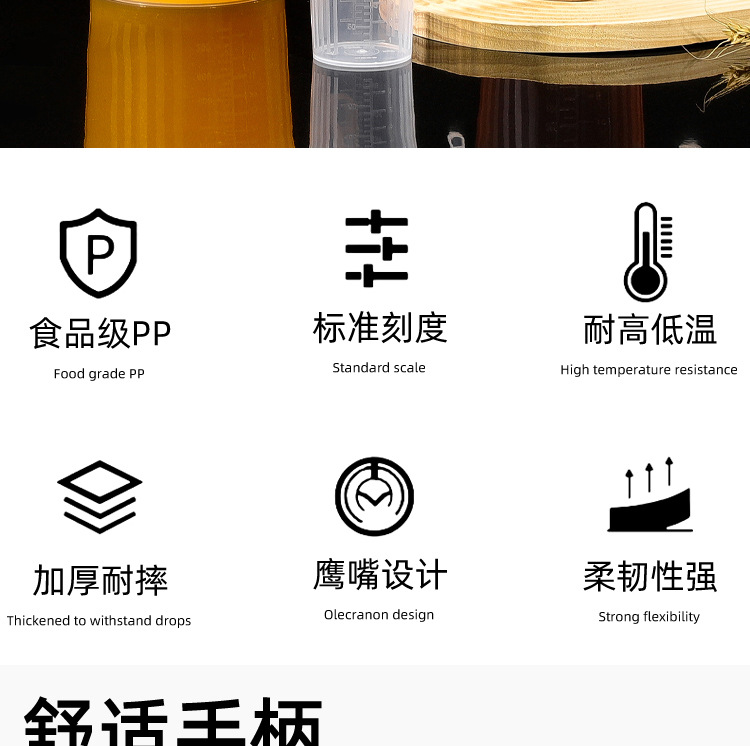 플라스틱 측정 컵 비커 뚜껑과 손잡이 비커 두꺼운 식품 등급 pp 재료 실험실 대용량 우유 차 가게