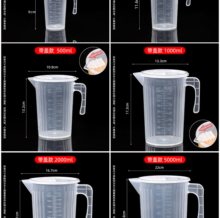플라스틱 측정 컵 비커 뚜껑과 손잡이 비커 두꺼운 식품 등급 pp 재료 실험실 대용량 우유 차 가게스토어 가기