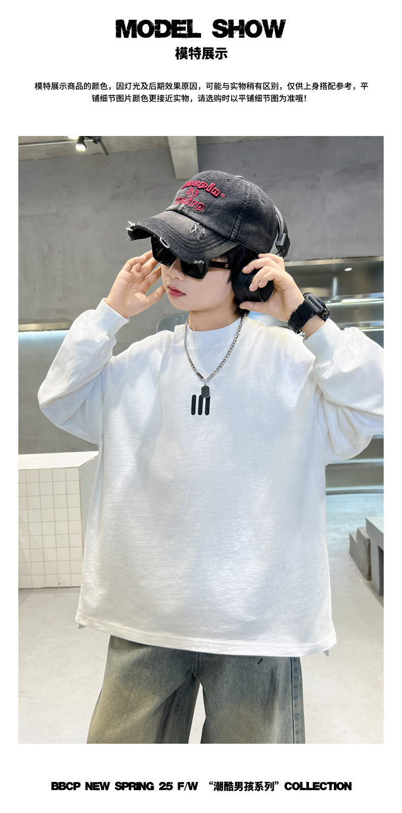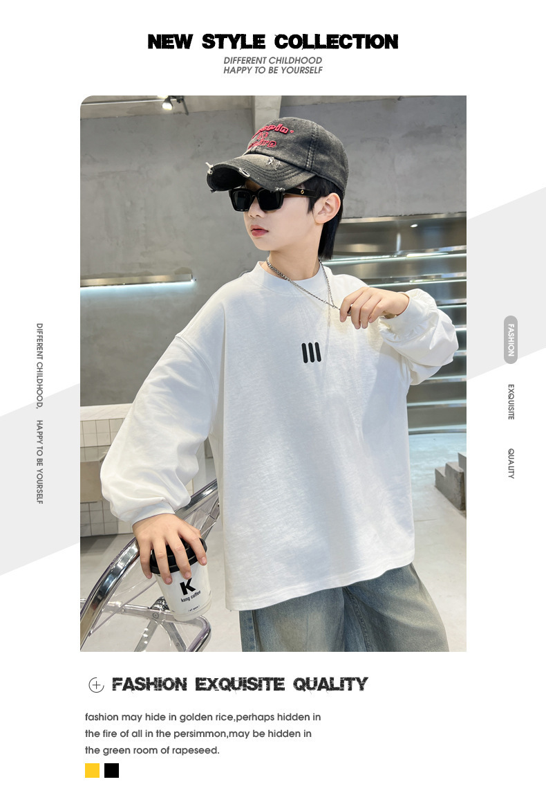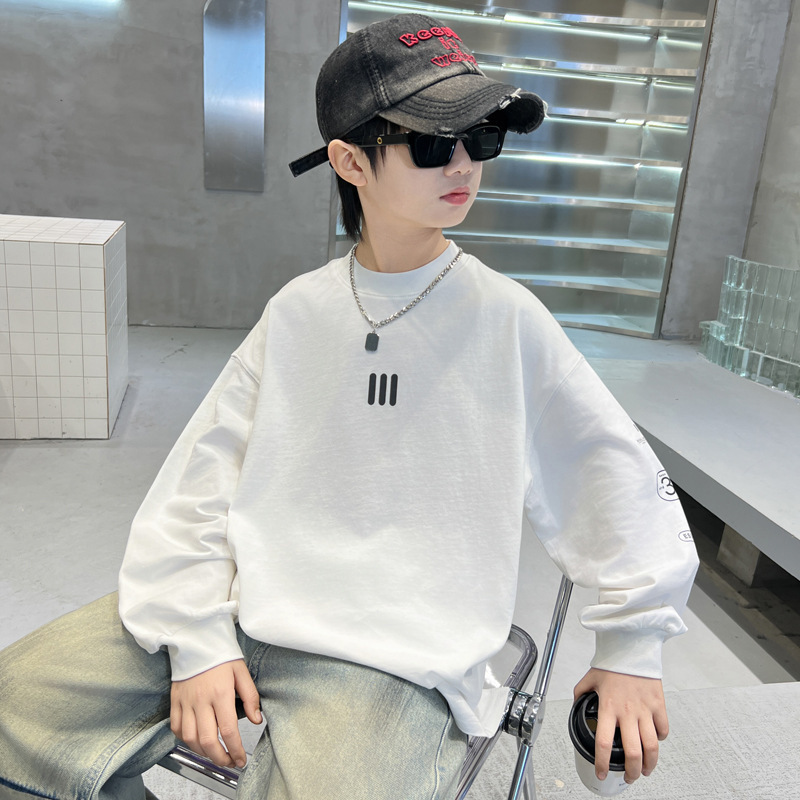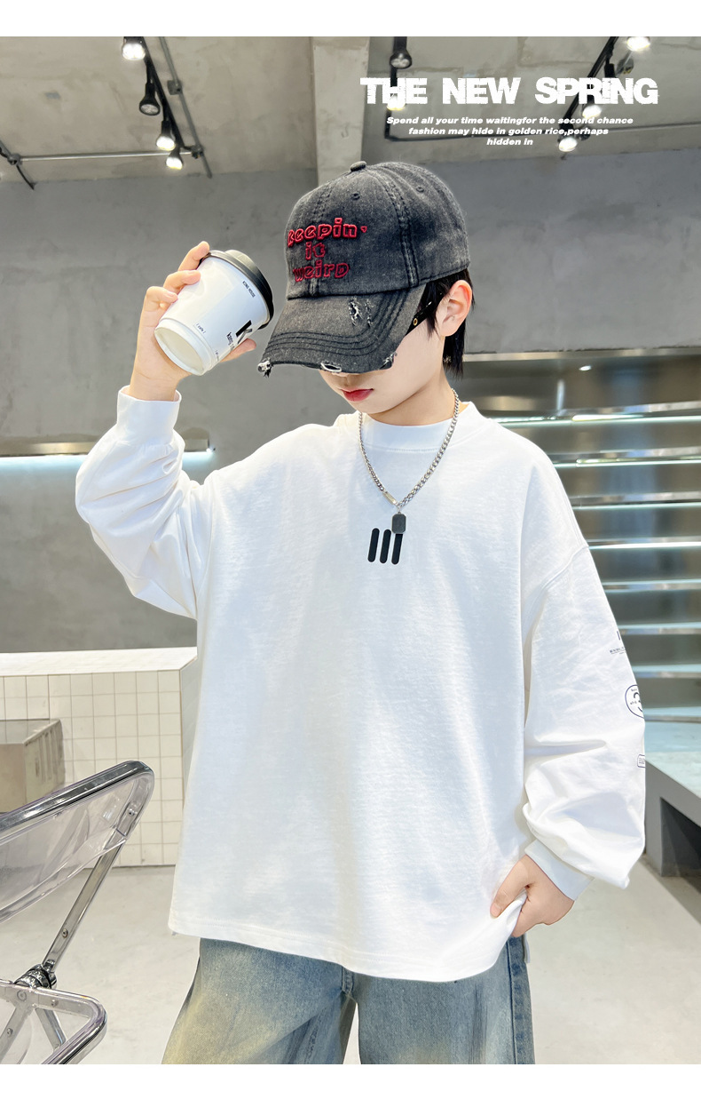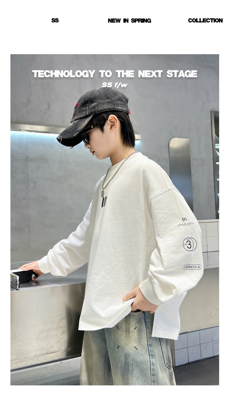 2025 새로운 봄 원피스 소년 긴팔 티셔츠 느슨한 올매치 유행 라운드 넥베이스 셔츠 한국 스타일 잘 생긴 탑