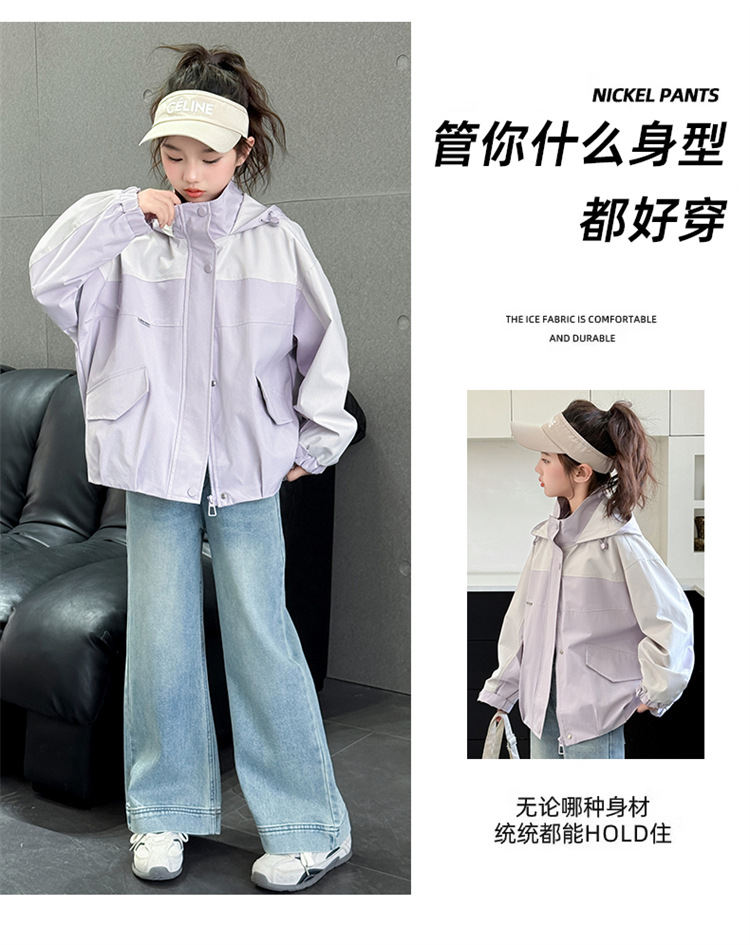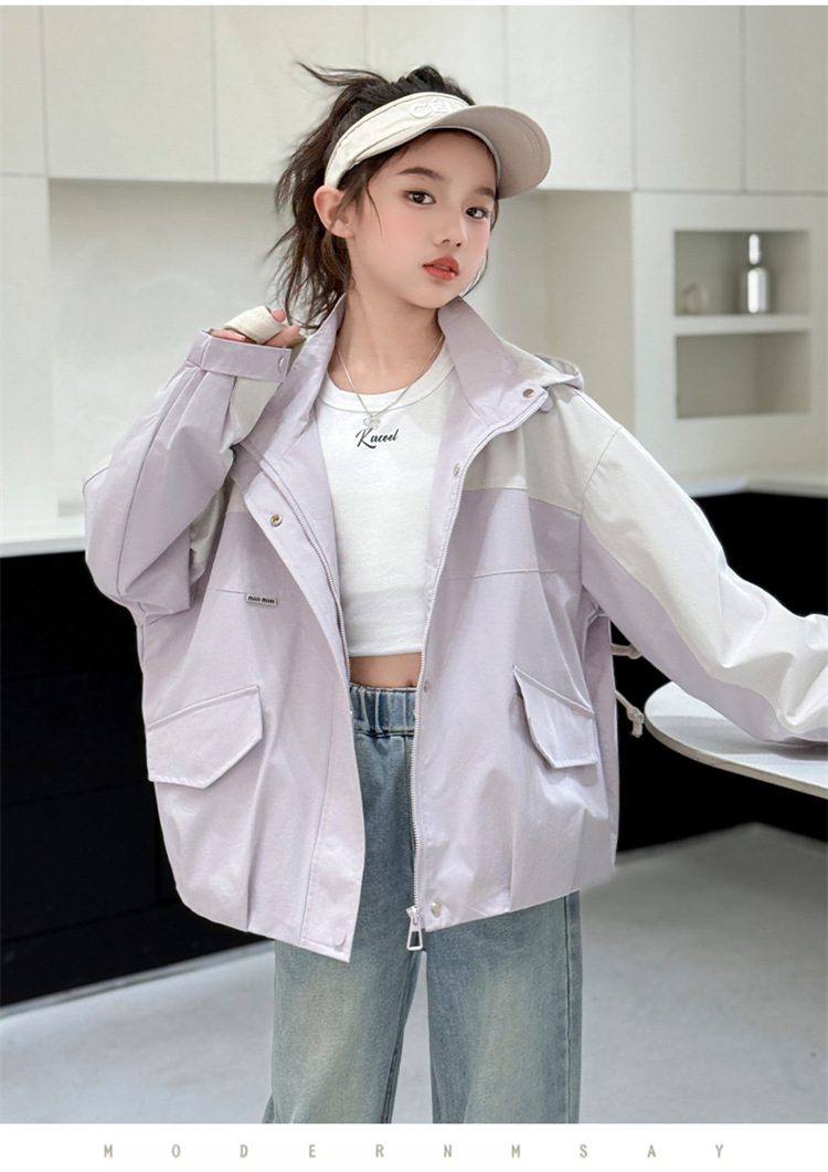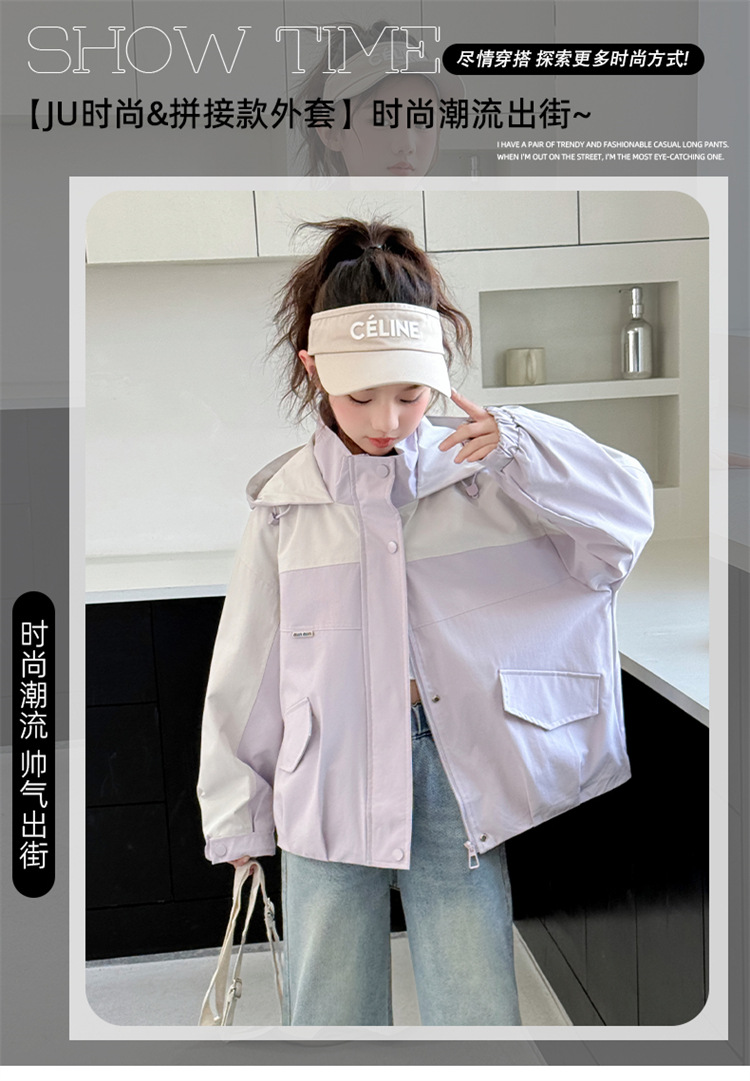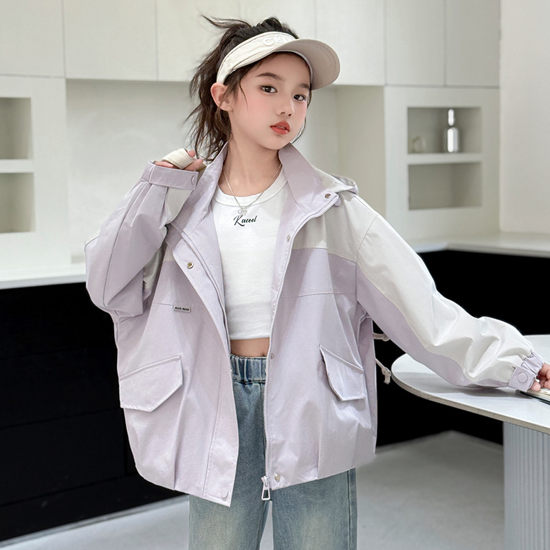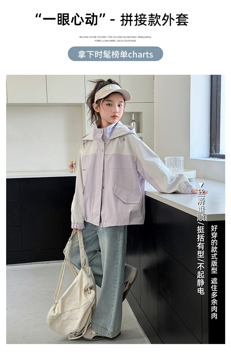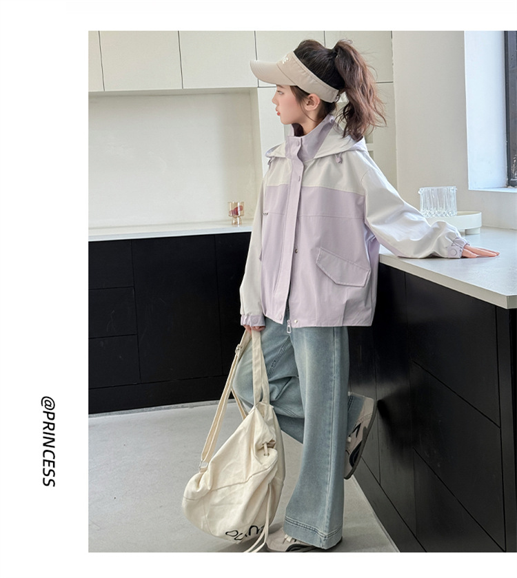 소녀 충전 재킷 봄과 가을 2025 새로운 스타일 야외 방풍 재킷 유행 후드 윈드 브레이커 트렌디스토어 가기