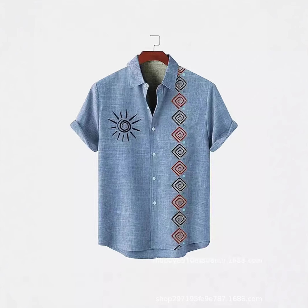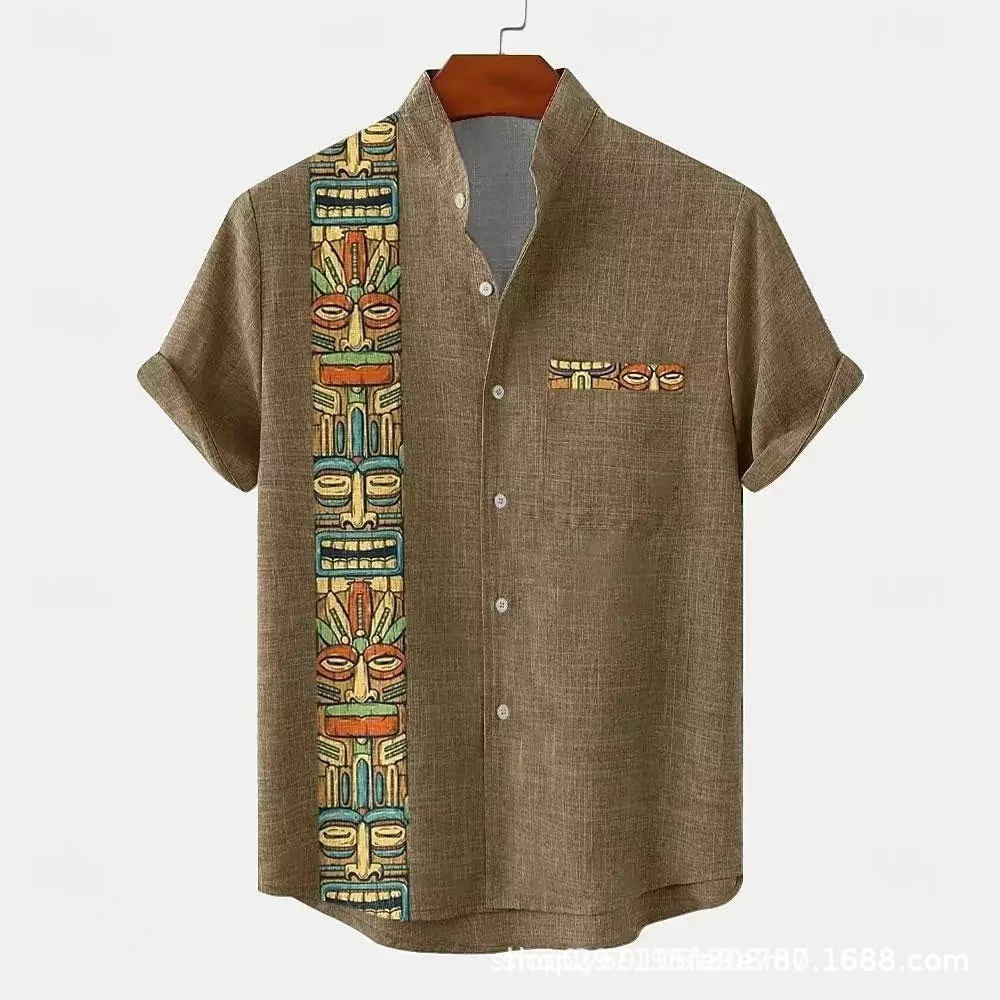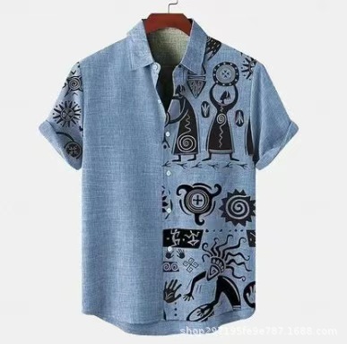 대외 무역 여름 남자의 짧은 소매 옷깃 카디건 하와이 3D 디지털 인쇄 셔츠 짧은 소매 셔츠스토어 가기