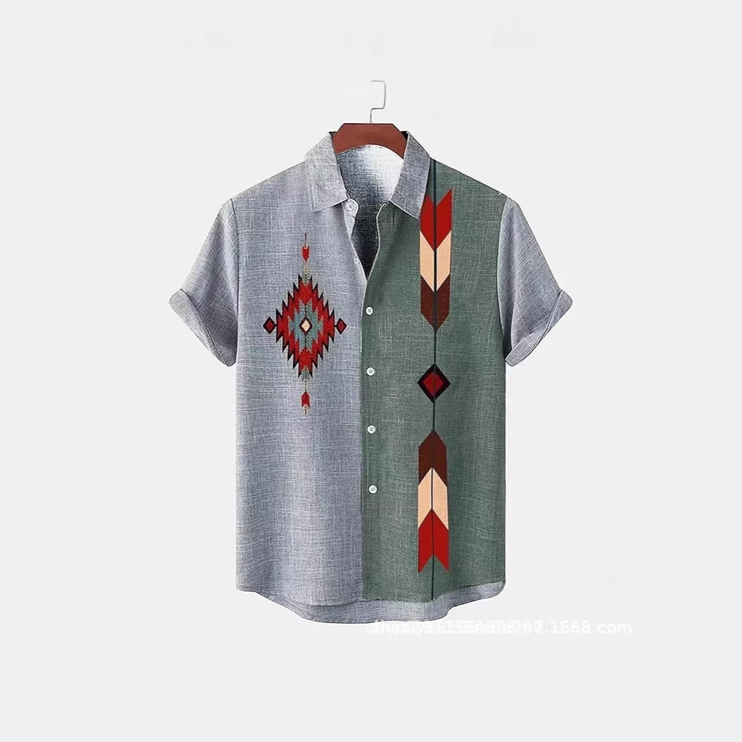 대외 무역 여름 남자의 짧은 소매 옷깃 카디건 하와이 3D 디지털 인쇄 셔츠 짧은 소매 셔츠