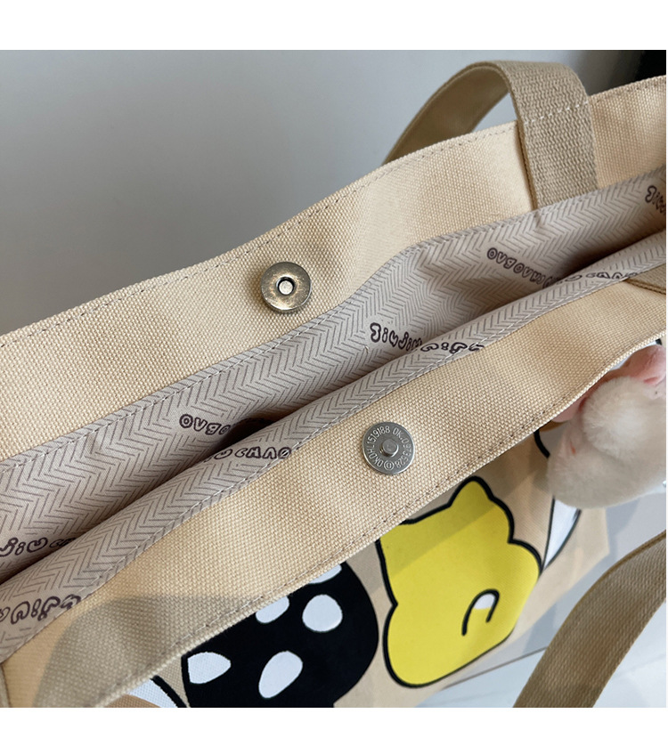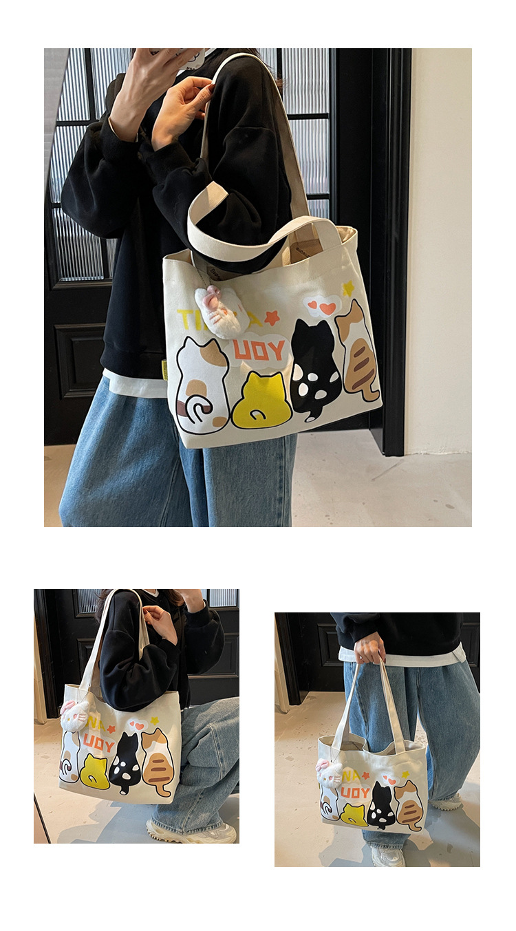 만화 귀여운 고양이 토트 백 여성의 2025 새로운 소녀 패션 캔버스 숄더 백 대용량 언더암 가방스토어 가기